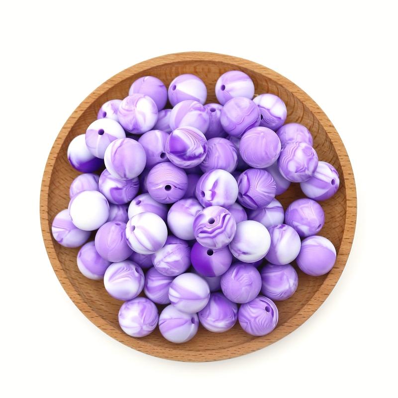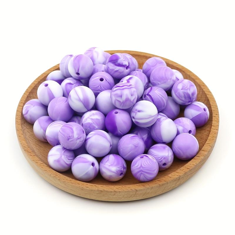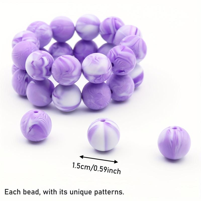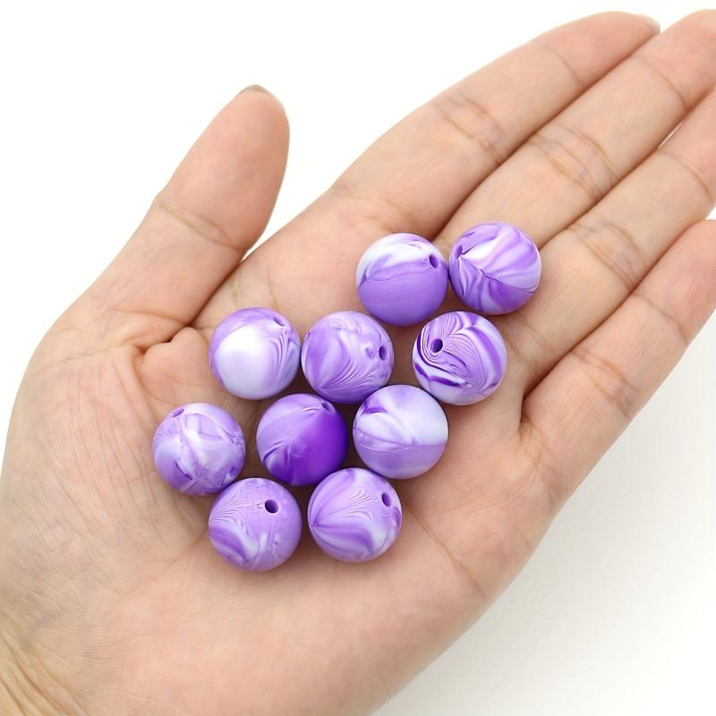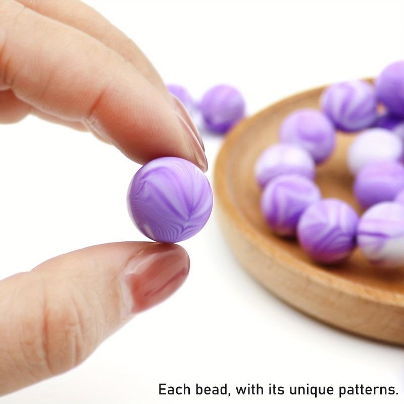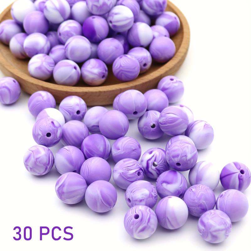Get creative with these 30 purple silicone beads with a swirl pattern for unique textures. Perfect for making your own bracelets and necklaces.