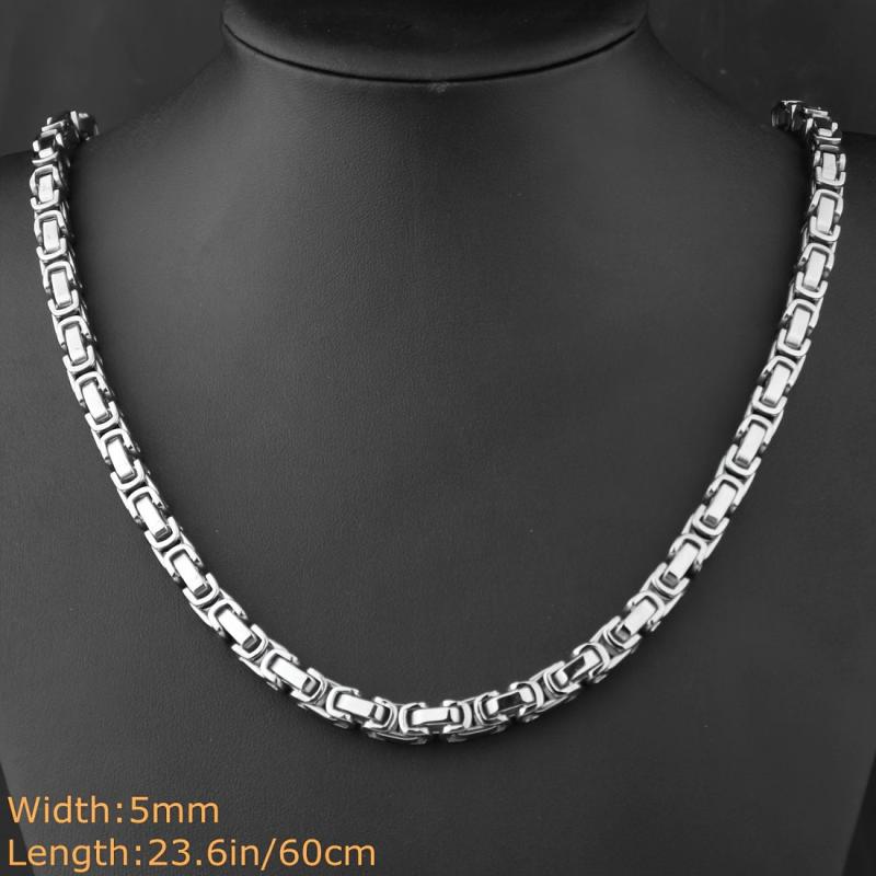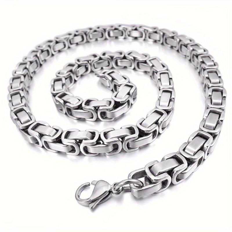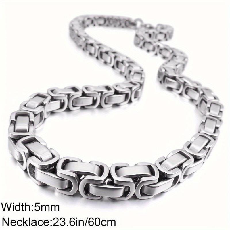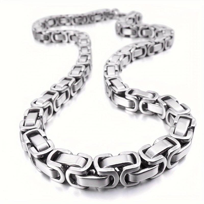 This durable 304L stainless steel necklace is perfect for daily wear, parties, and holidays. Its Cuban chain and Byzantine link design add a stylish touch to any outfit.