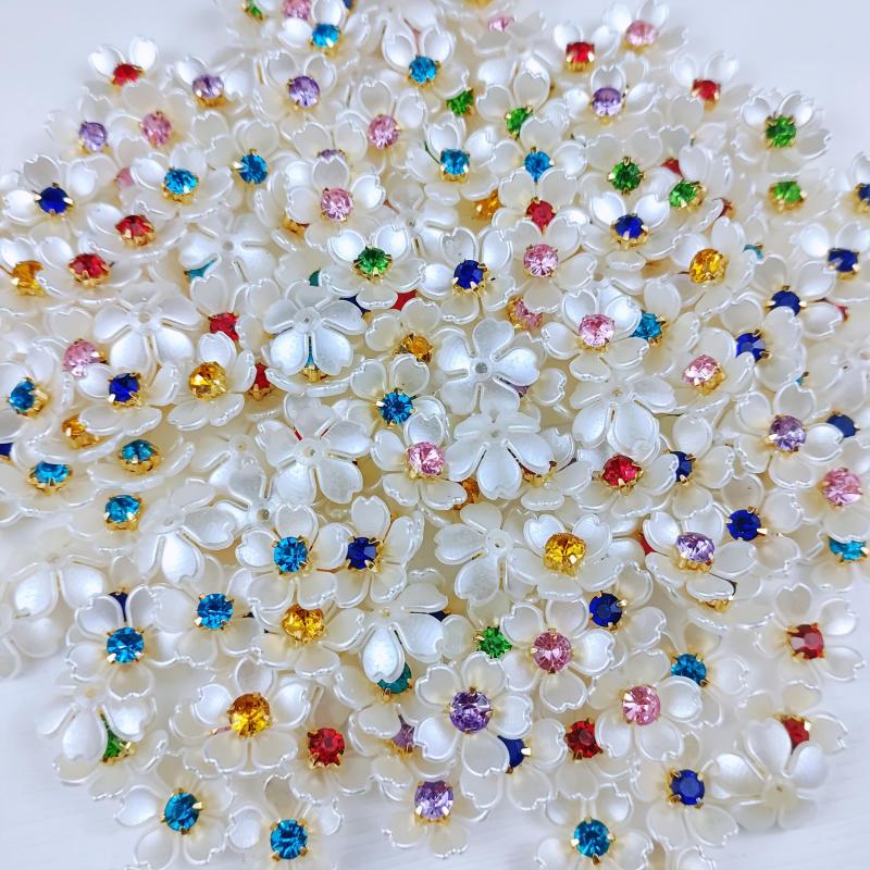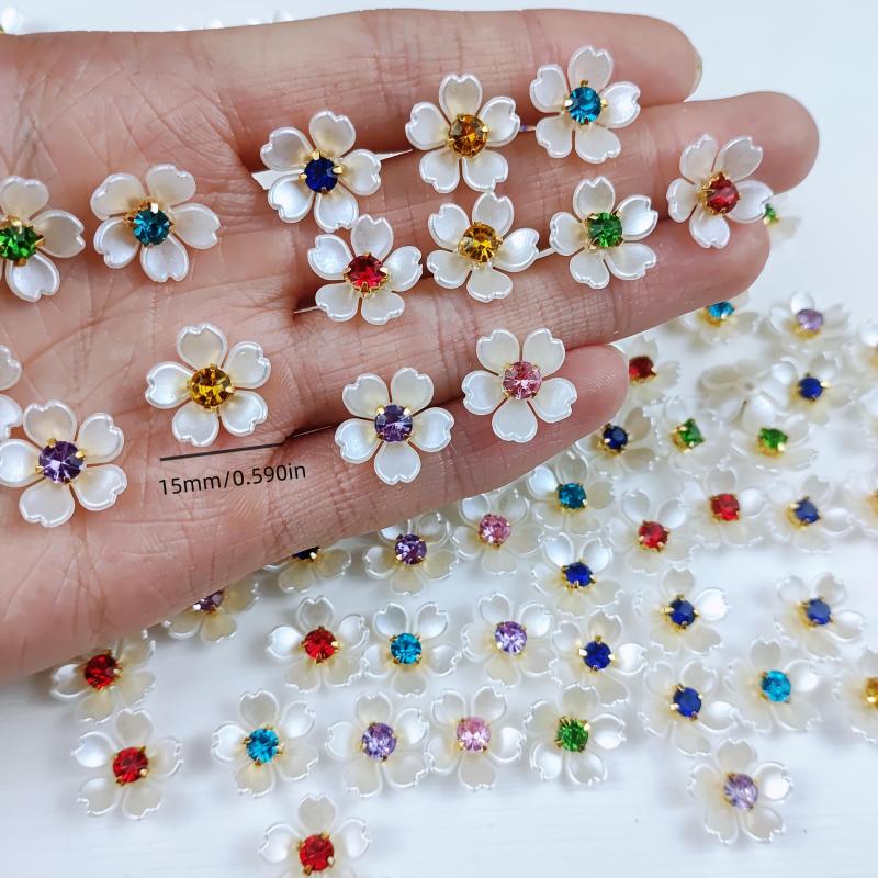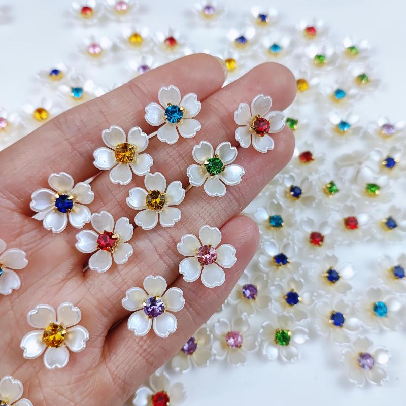 Create stunning DIY jewelry with these 5 petal flower patches featuring rhinestones. Each patch measures 15mm and comes in a mix of beautiful colors.
