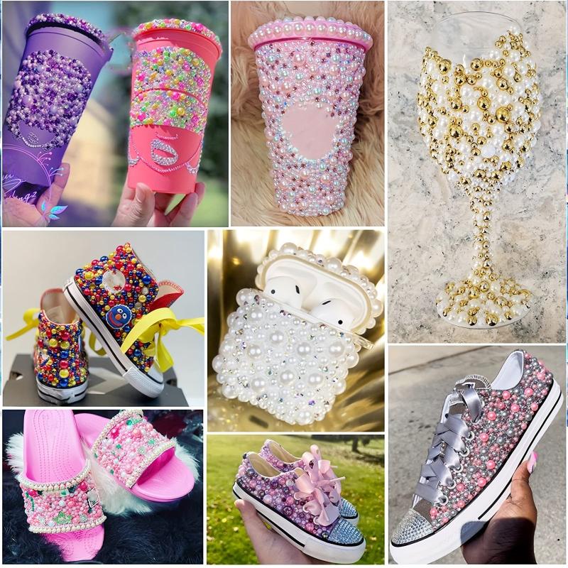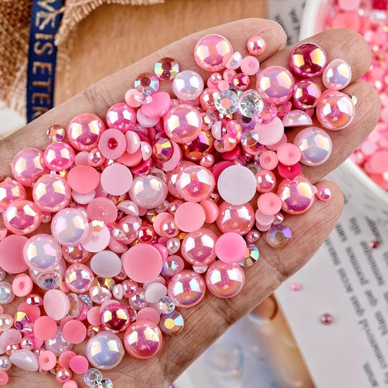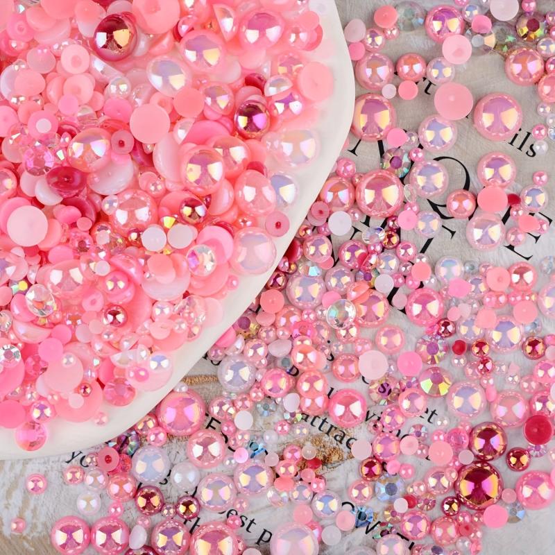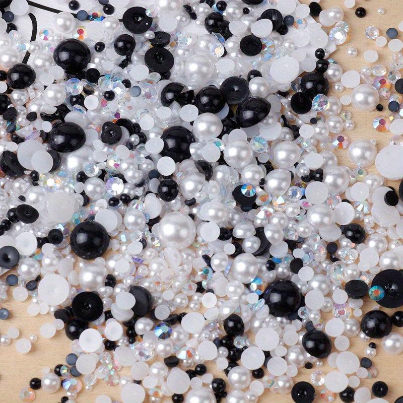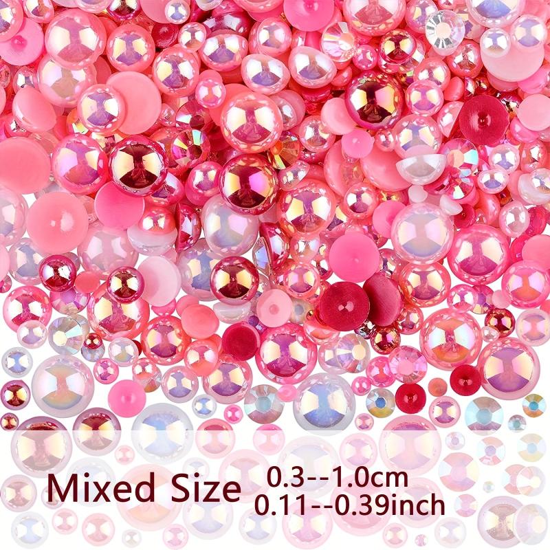 These half round pearl rhinestones are perfect for crafts like nail art and shoes. The set includes 3200pcs of 3mm and 10mm half face pearl rhinestones. Made of high-quality resin material.