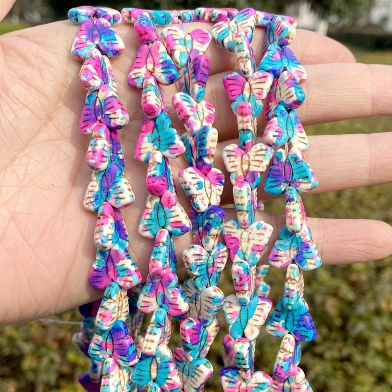 These 13x15mm butterfly stone beads in vibrant green, pink, and purple are perfect for DIY jewelry making. Use them to create bracelets, necklaces, and accessories.