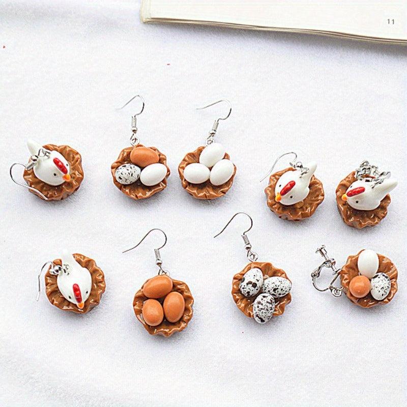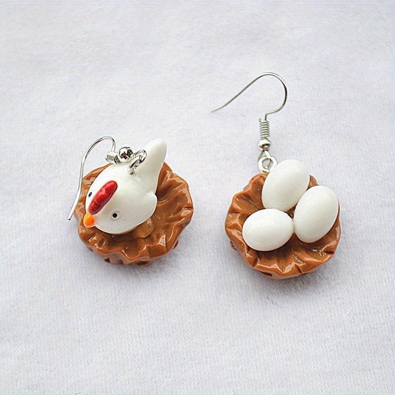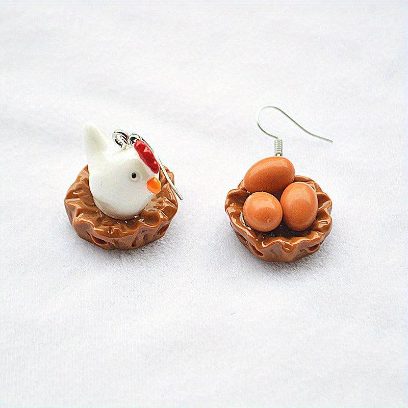 These adorable chicken egg dangle earrings will add a touch of humor and charm to your outfit. Made from high-quality resin, these earrings are perfect for anyone who loves a cute and unique accessory.