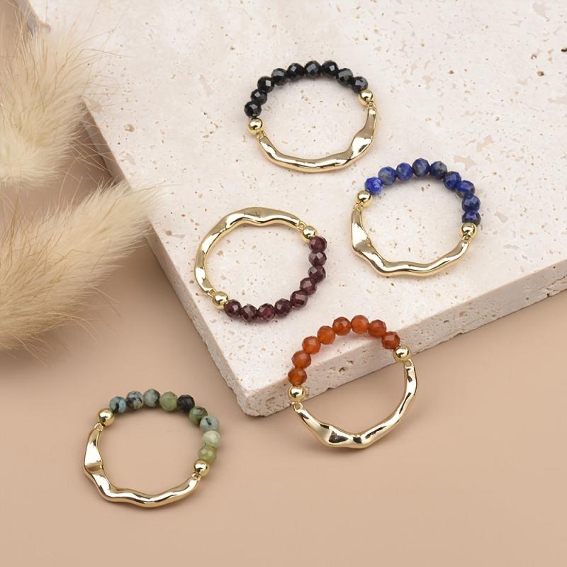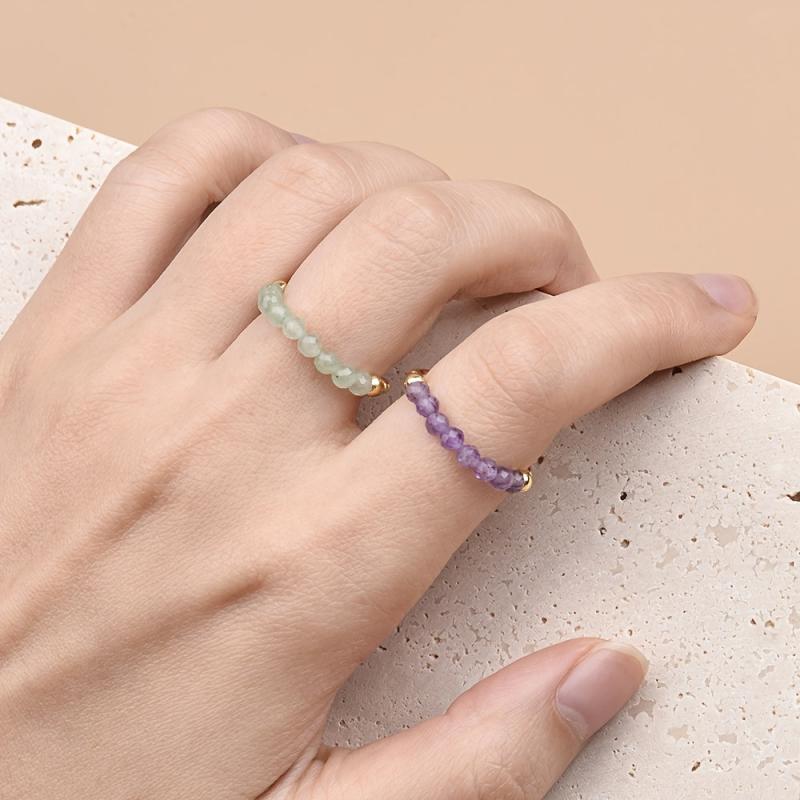 Explore the healing powers of natural stone beads with this variety pack of rings featuring Amethyst, Aventurine, Garnet, and Aquamarine. Perfect for stacking or wearing individually.