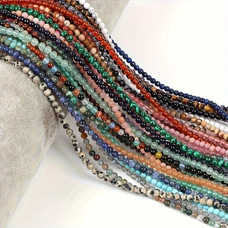 Explore your creativity with this set of 3mm natural stone beads including Amethyst, Rose Quartz, Turquoise, Agates. Perfect for making unique and personalized jewelry pieces.