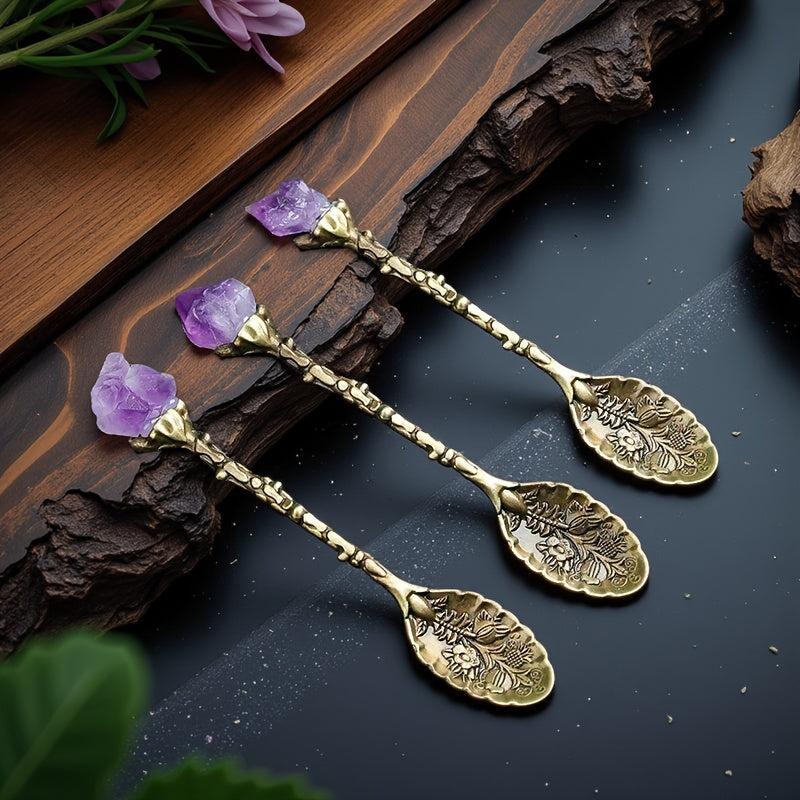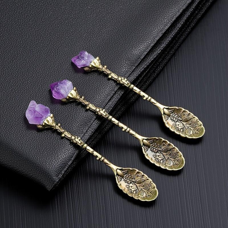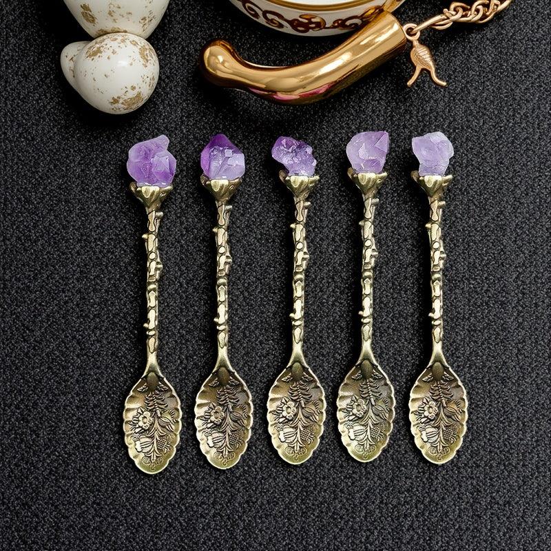 Enhance your coffee experience with these unique spoons made from amethyst clusters. Perfect for coffee shops, kitchens, offices, bars, and tableware decoration.