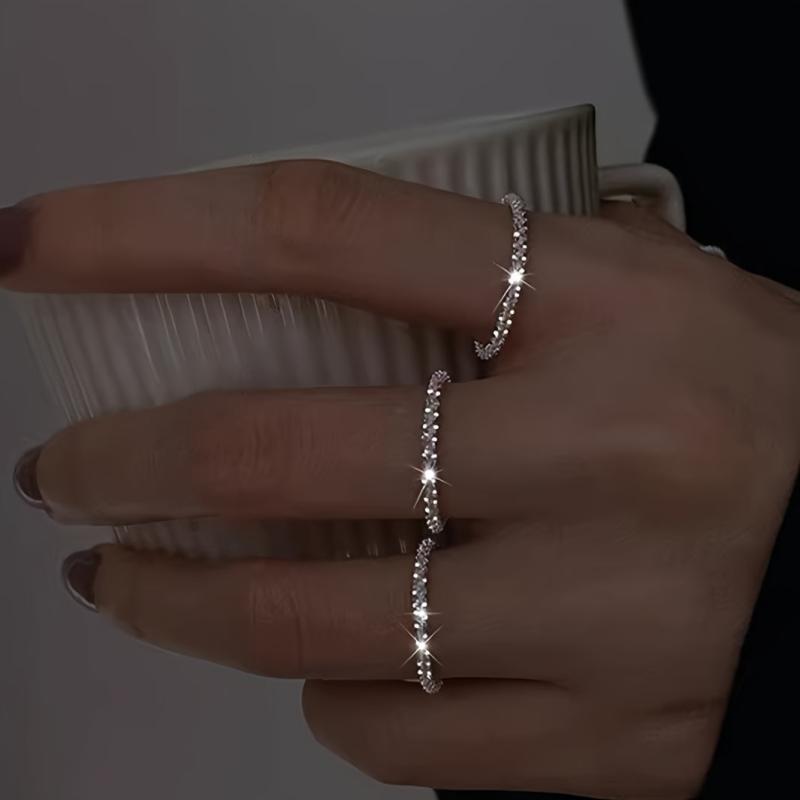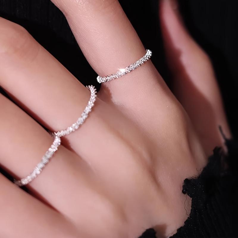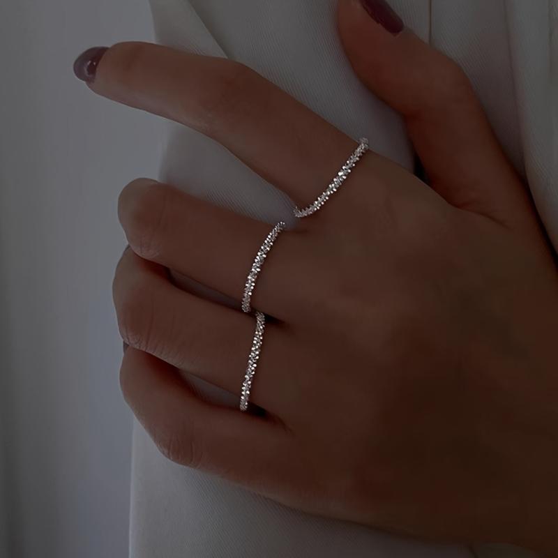 Enhance your everyday style with this stackable ring set featuring bling chain design. Perfect gift accessory for women.