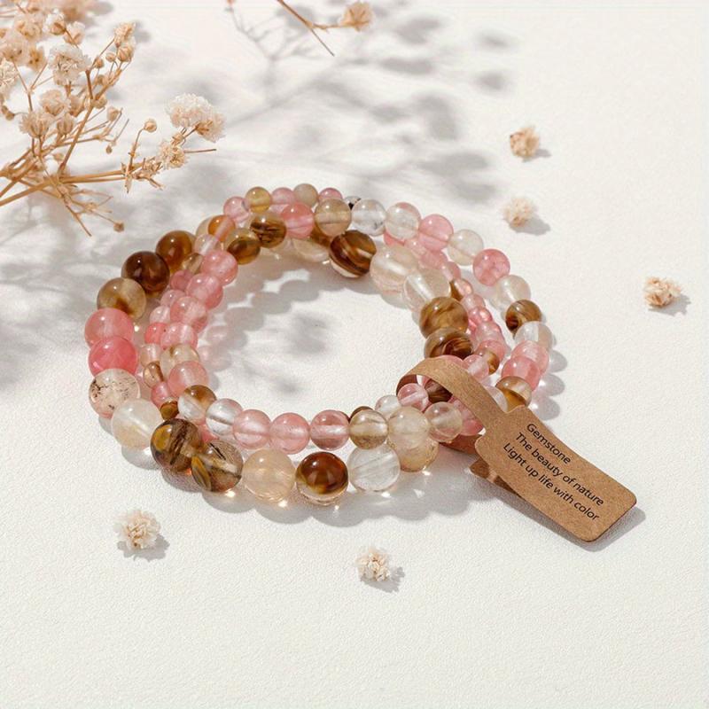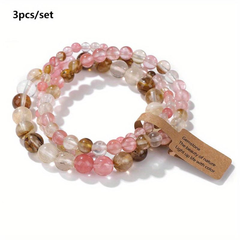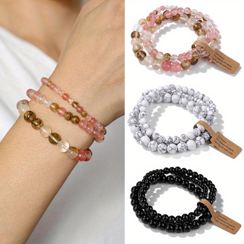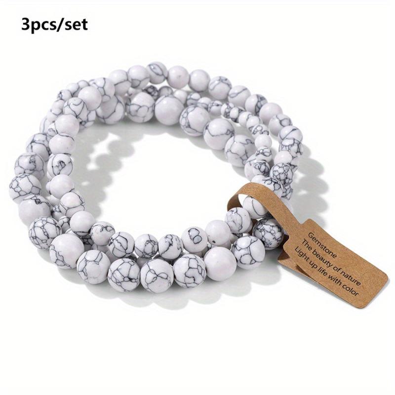 Enhance your style with this set of 3 stone bead bracelets in varying sizes. The elastic ropes ensure a comfortable fit for couples.