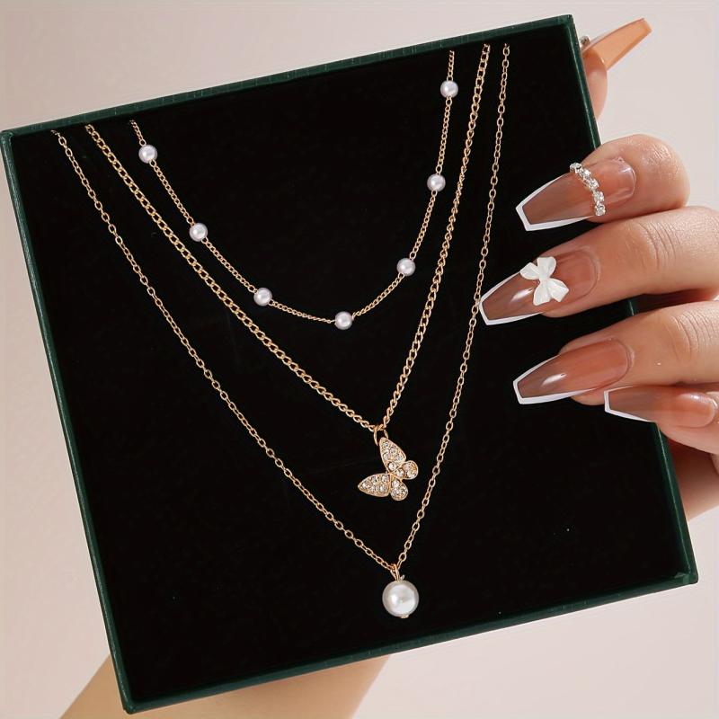 Complete your outfit with this stackable necklace set featuring butterfly design. Perfect for vacations, parties, and daily wear.