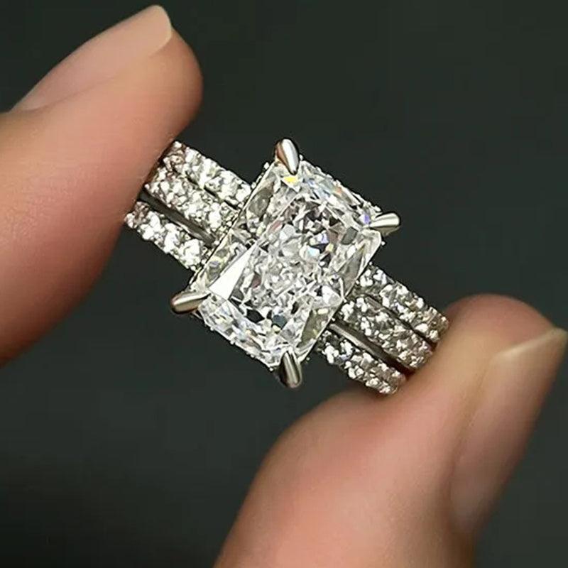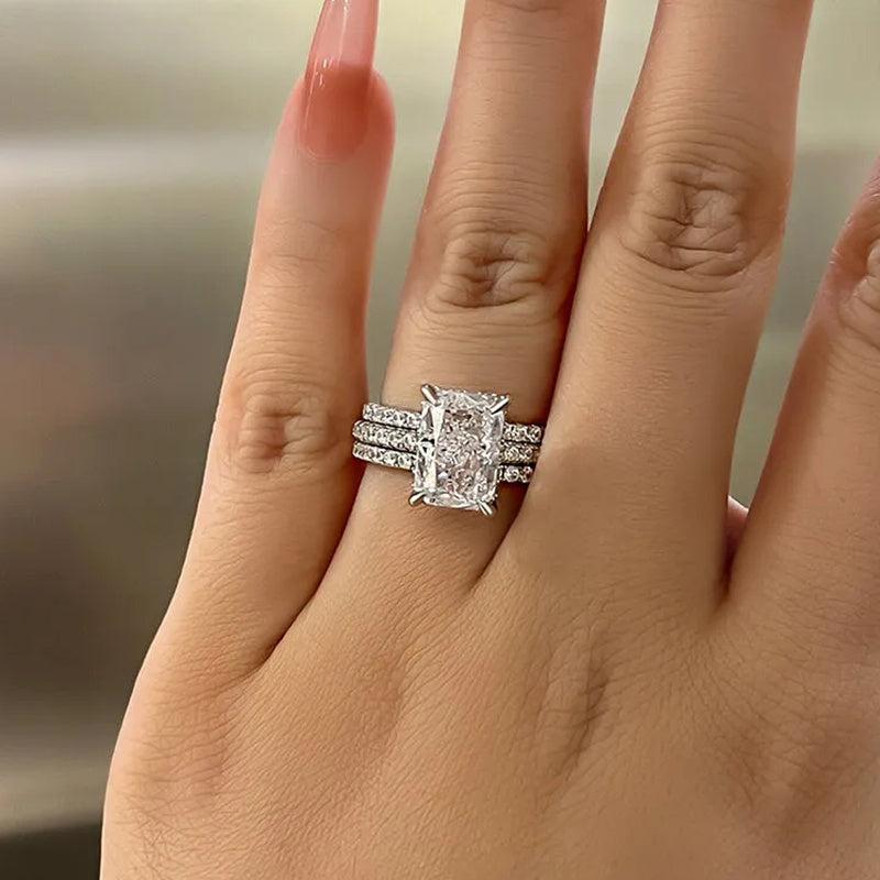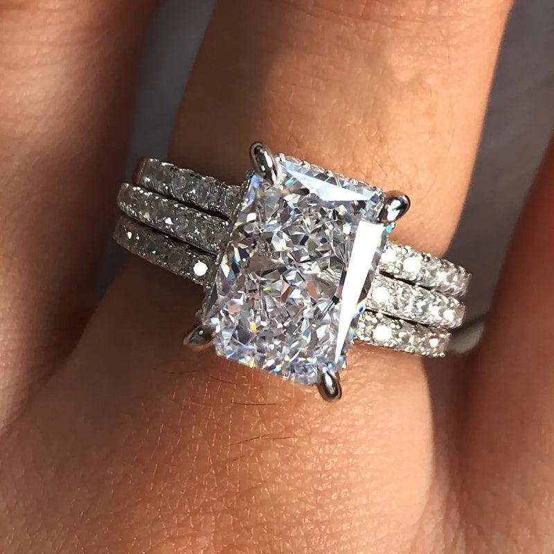 This set includes 3 elegant ladies' wedding rings with sparkling square zirconia stones. Perfect for weddings, banquets, and special occasions.