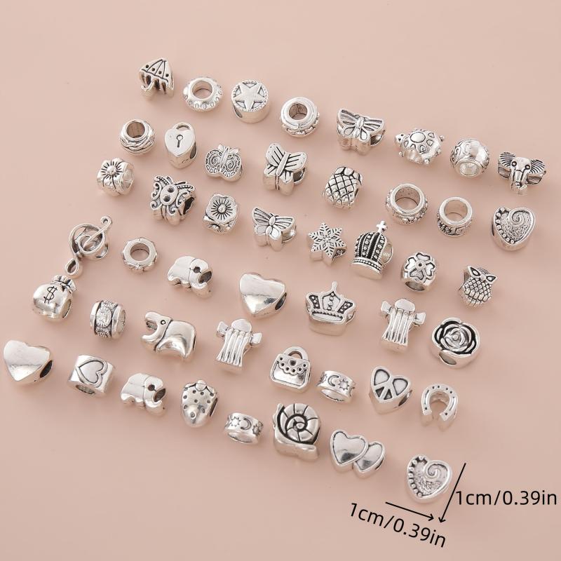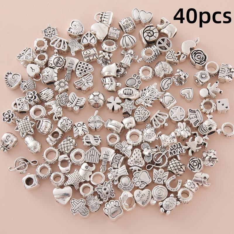 These 40 assorted metal beads are perfect for creating stunning bracelets, necklaces, keychains, phone chains, and other DIY jewelry. Made of high-quality zinc alloy with textured designs, they are ideal for women's accessories.