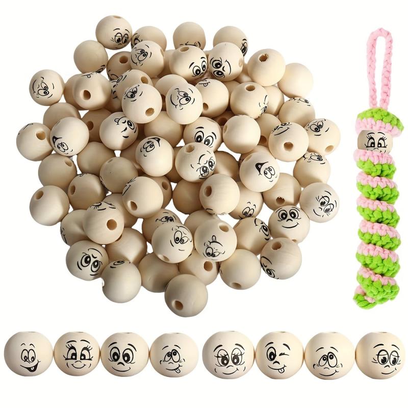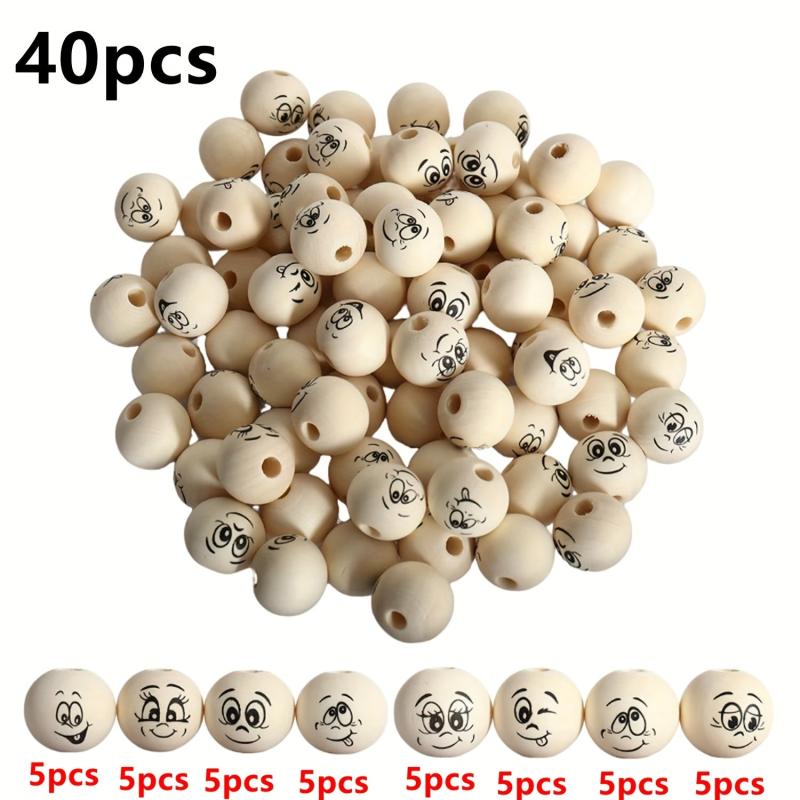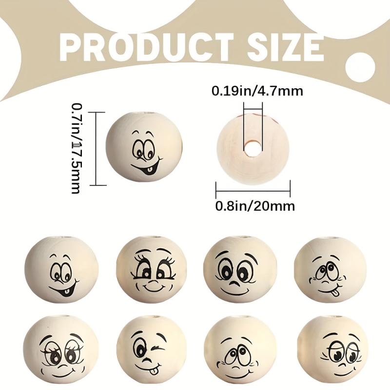 Enhance your DIY jewelry projects with this set of 40 wood face expression beads featuring 8 emotion faces such as happy, sad, angry, surprised, fearful, disgusted, and boredom. The beads come with both round and flat backs for versatile use.