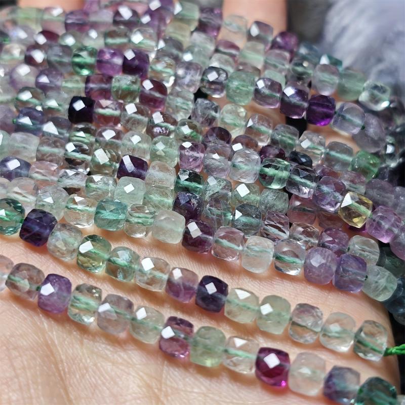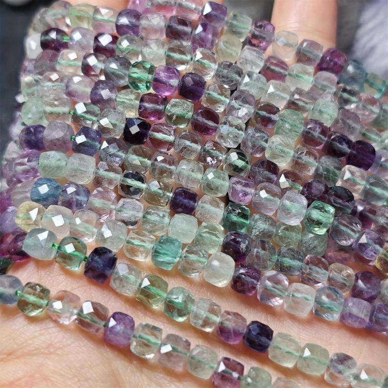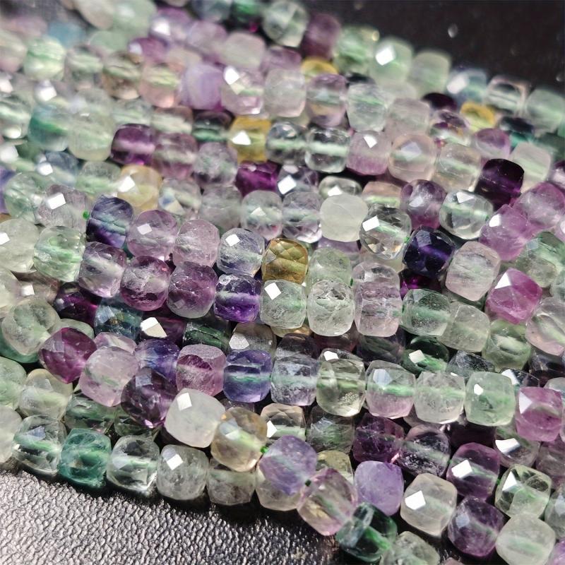 4mm Natural Fluorite Spacer Beads Faceted Multicolor