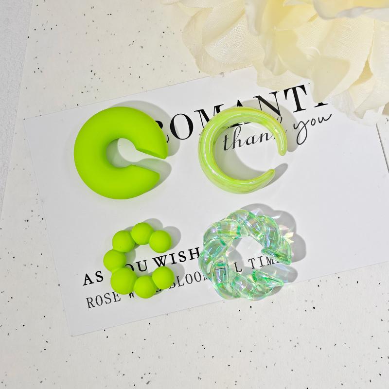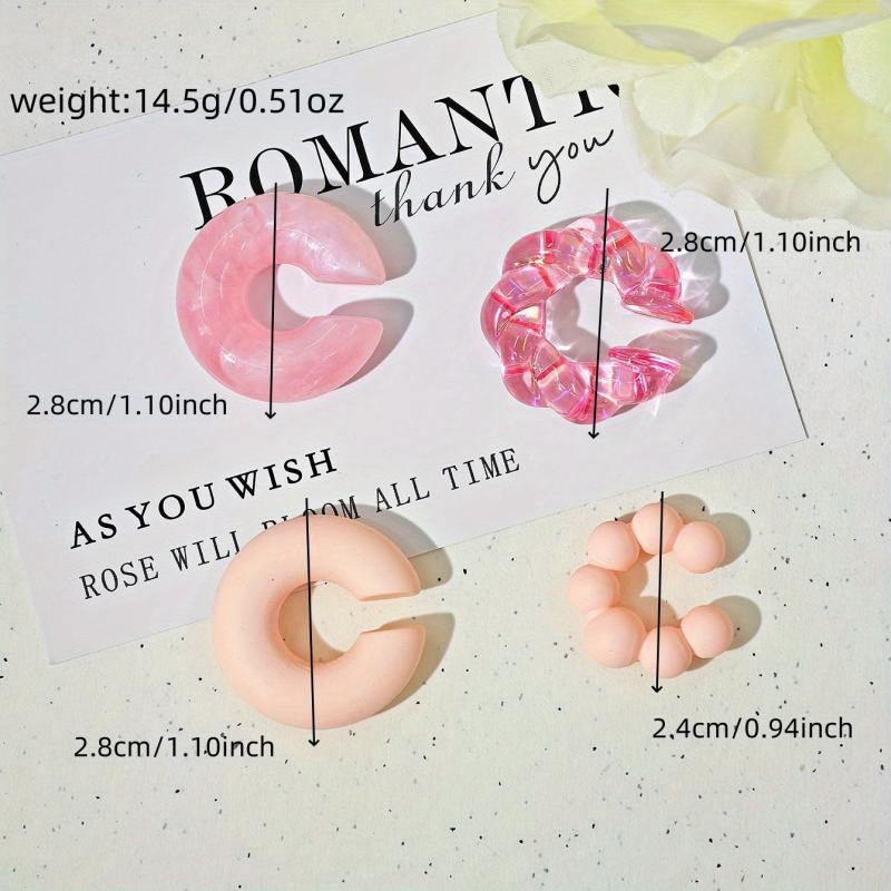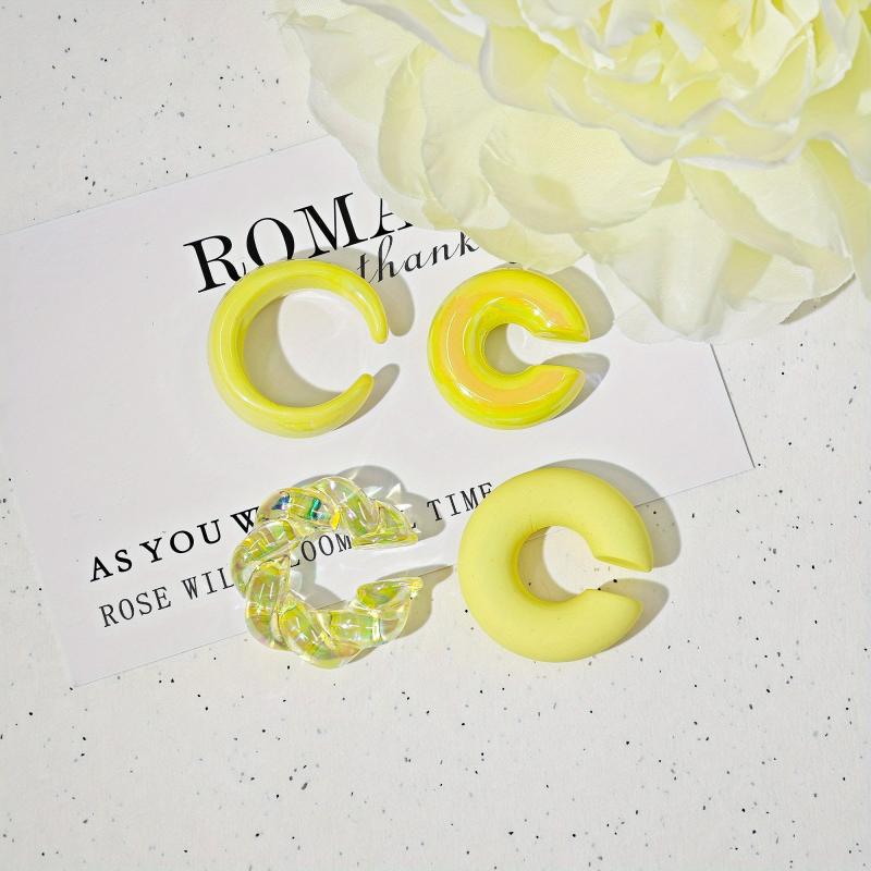 Stay trendy with this set of 4 fashionable summer ear bone clips. These unique, semi-transparent earrings feature colorful threads and irregular shapes.