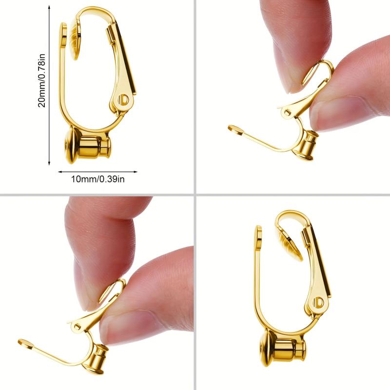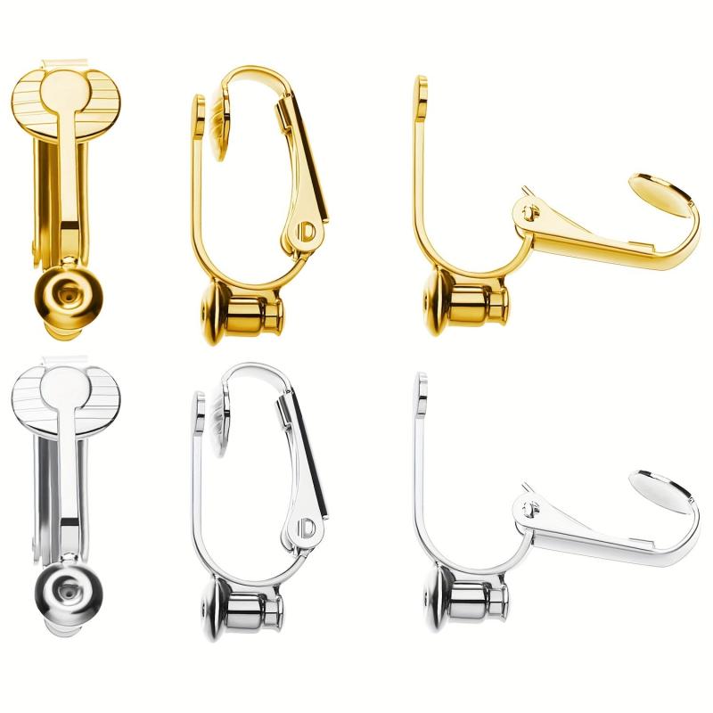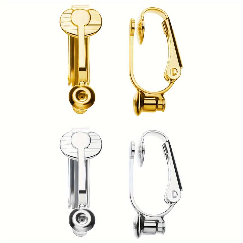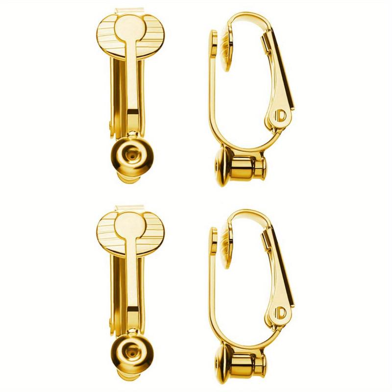 This set includes 4 earring clip backs with posts for none pierced ears. Available in silvery and golden colors. Perfect for converting regular earrings to clip-ons.