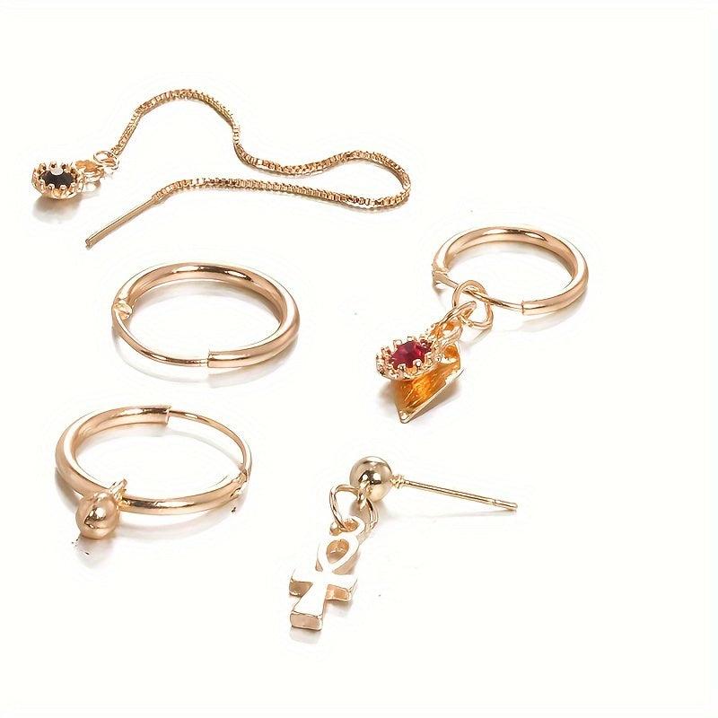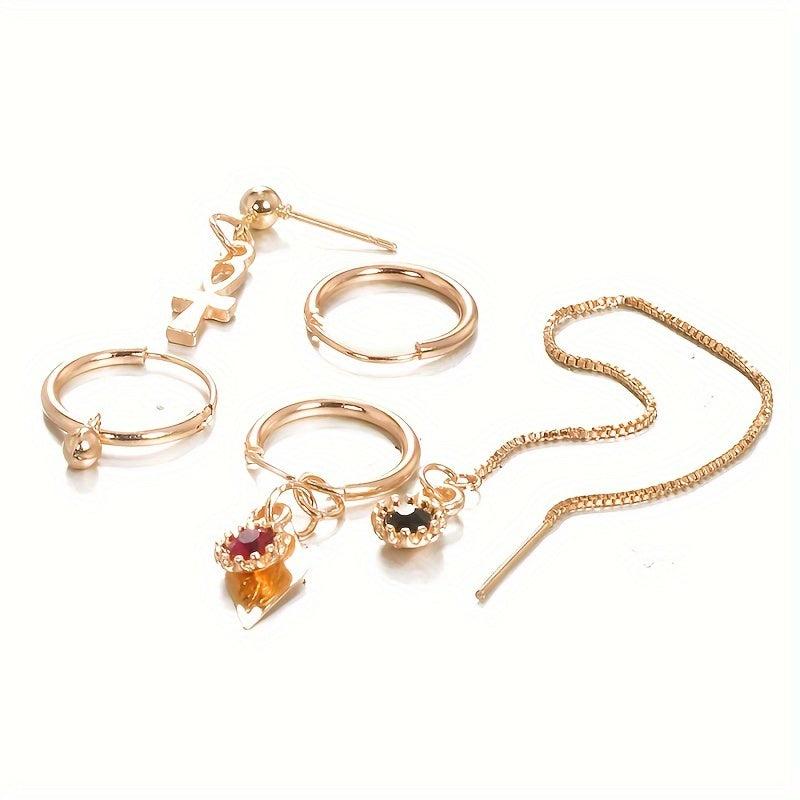5-Piece 14K Gold-Plated Sexy Drop Earrings Set for Daily & Party Wear