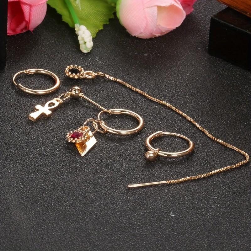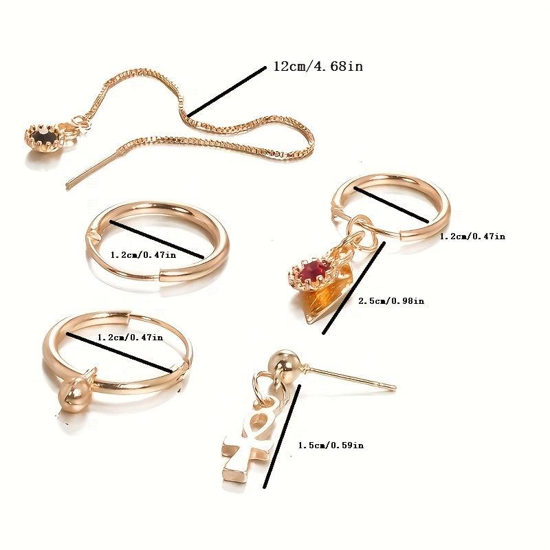 This set includes 5 pairs of drop earrings with stainless steel needles. Made of iron with 14K gold plating, perfect for all seasons and occasions.