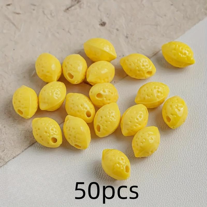 Add a pop of citrus-inspired charm to your bracelets, necklaces, earrings, and keychains with these lemon-shaped acrylic beads. Perfect for crafting unique accessories.