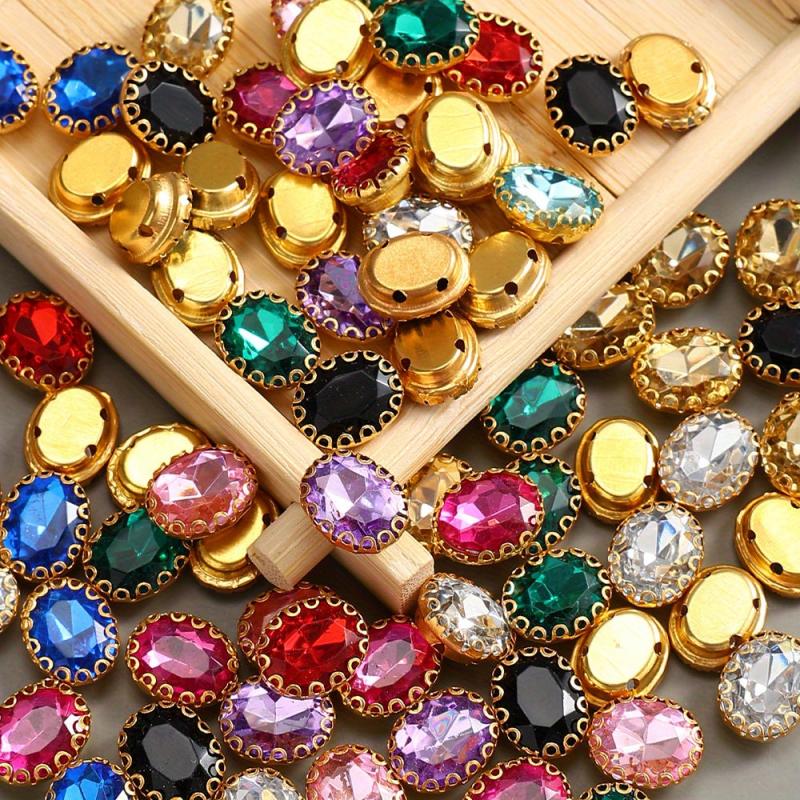 Enhance your craft projects with these sparkling acrylic oval rhinestones. Each rhinestone is set in a golden tone bezel for a luxurious look. Perfect for making jewelry and other DIY creations.