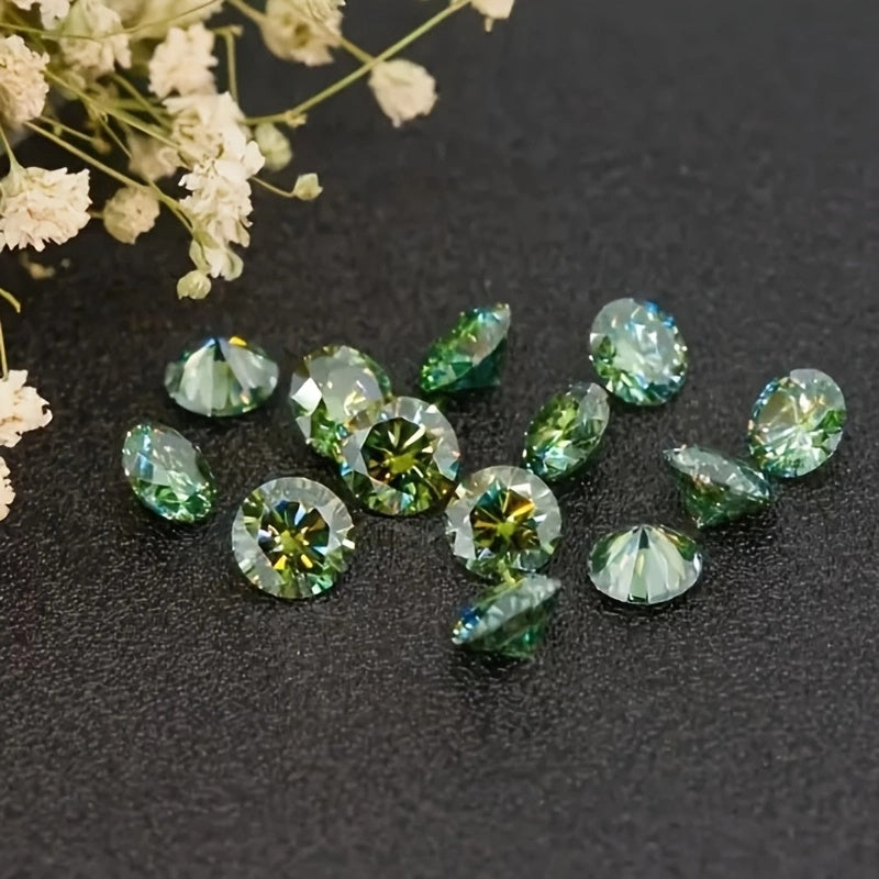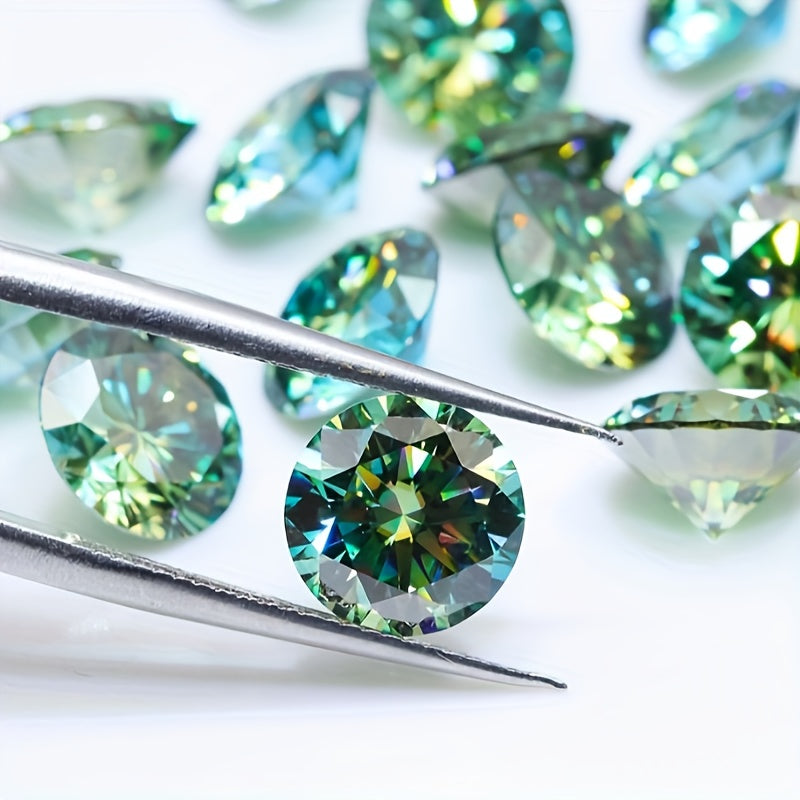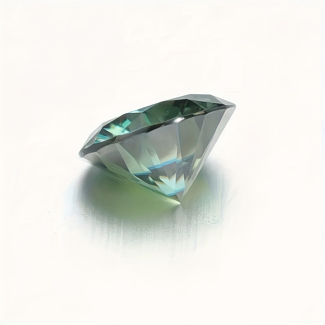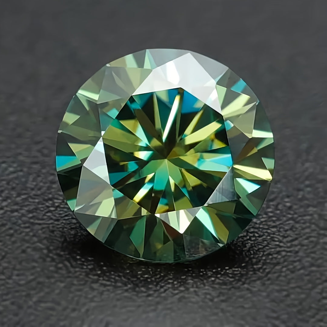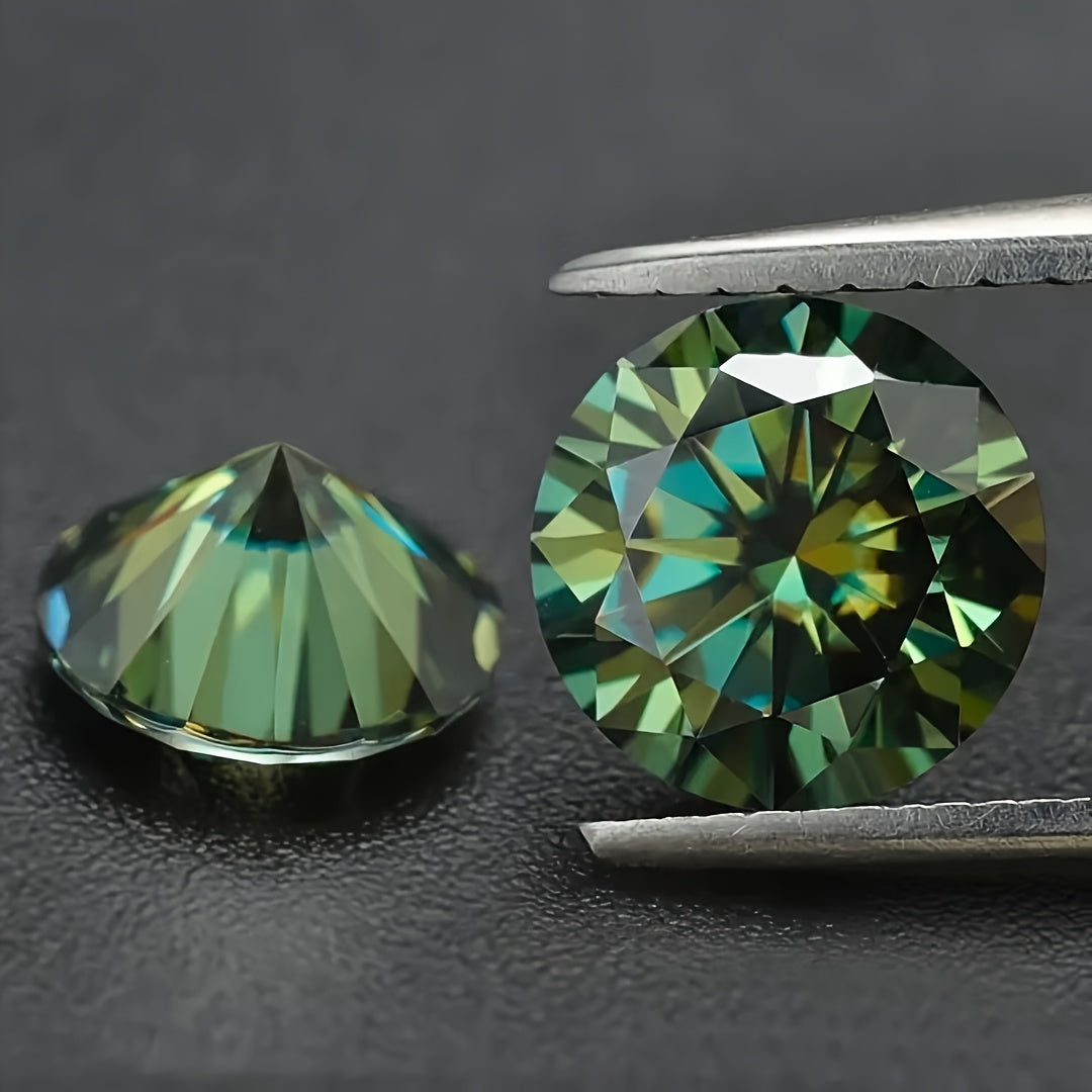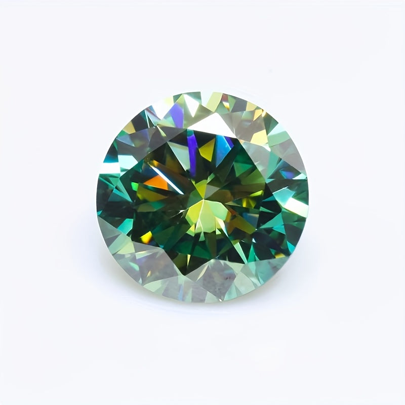 This 5 carat round green moissanite stone is perfect for creating your own earrings, rings, necklaces, and other jewelry accessories. The synthetic faux gemstone offers earthy tones that will enhance your designs.