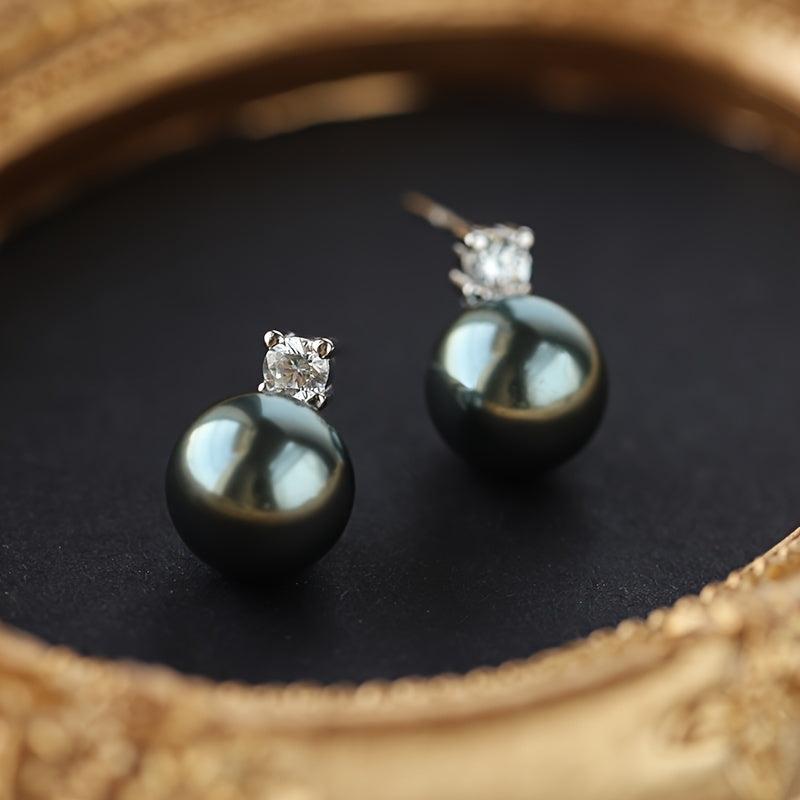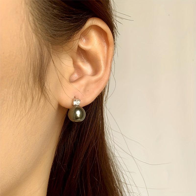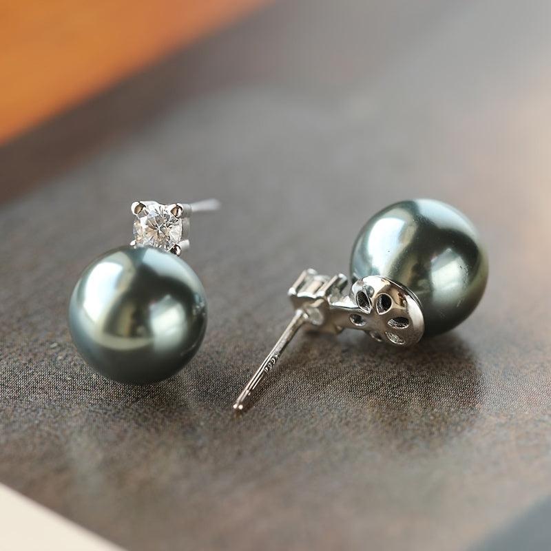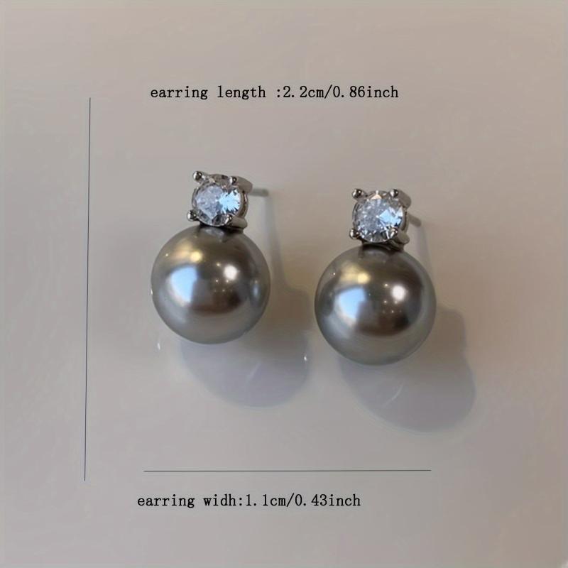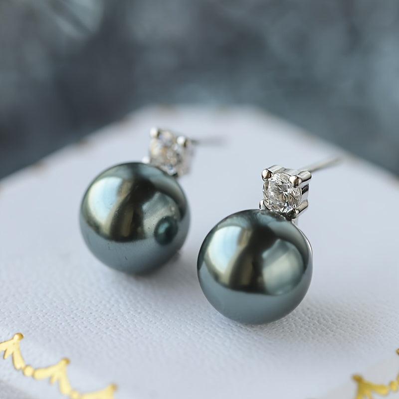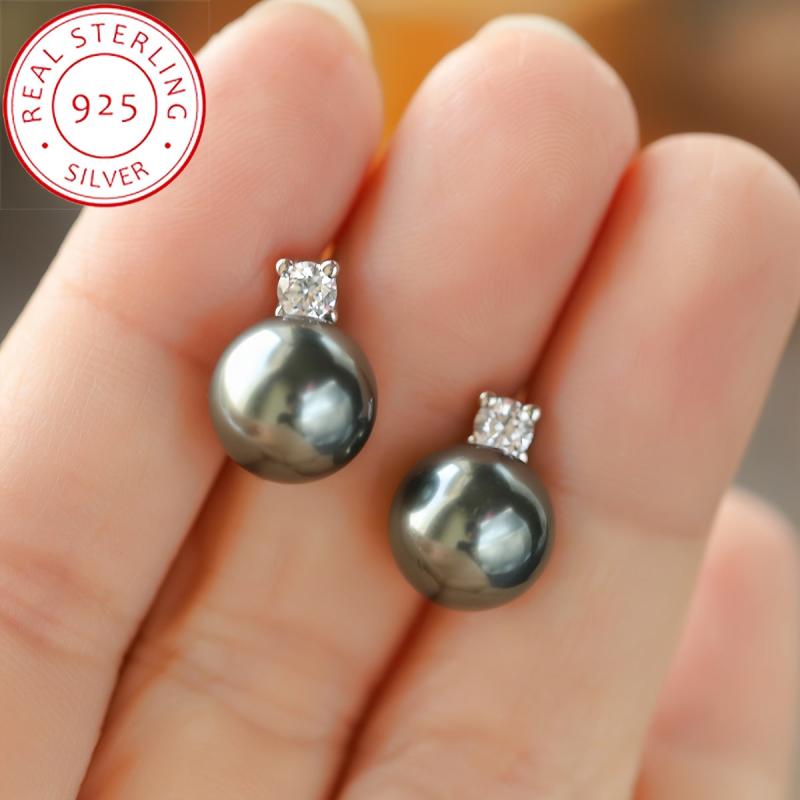 S925 Sterling Silver Pearl Stud Earrings with Linen Vintage Style Synthetic Stones. April Birthstone, Silver Plated.