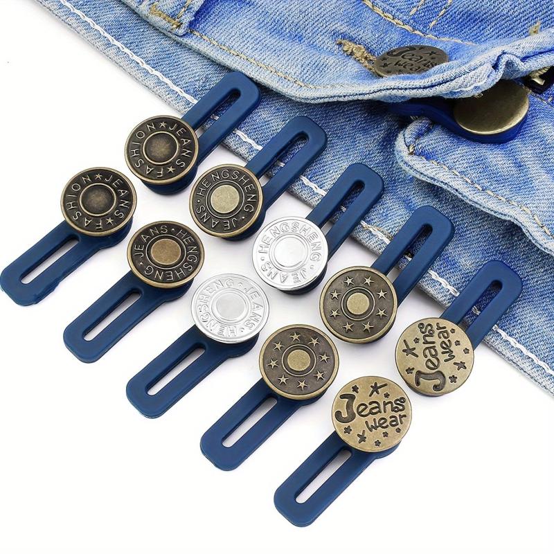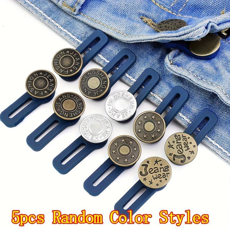 This set includes 5 button extenders for pants that make it easy to adjust the waist size. No sewing or tools required, simply attach the extender to the button on your pants for a comfortable fit.