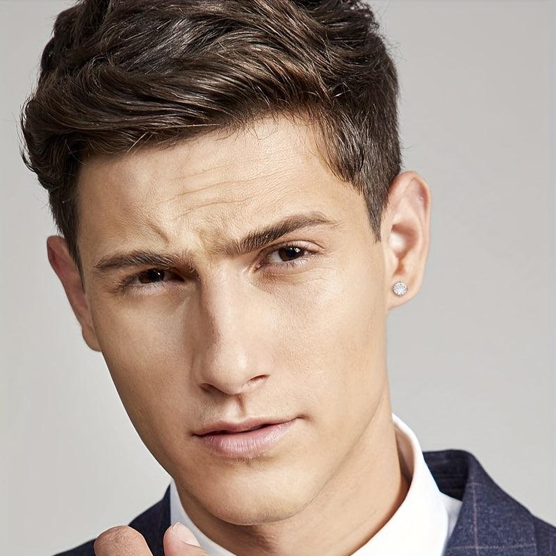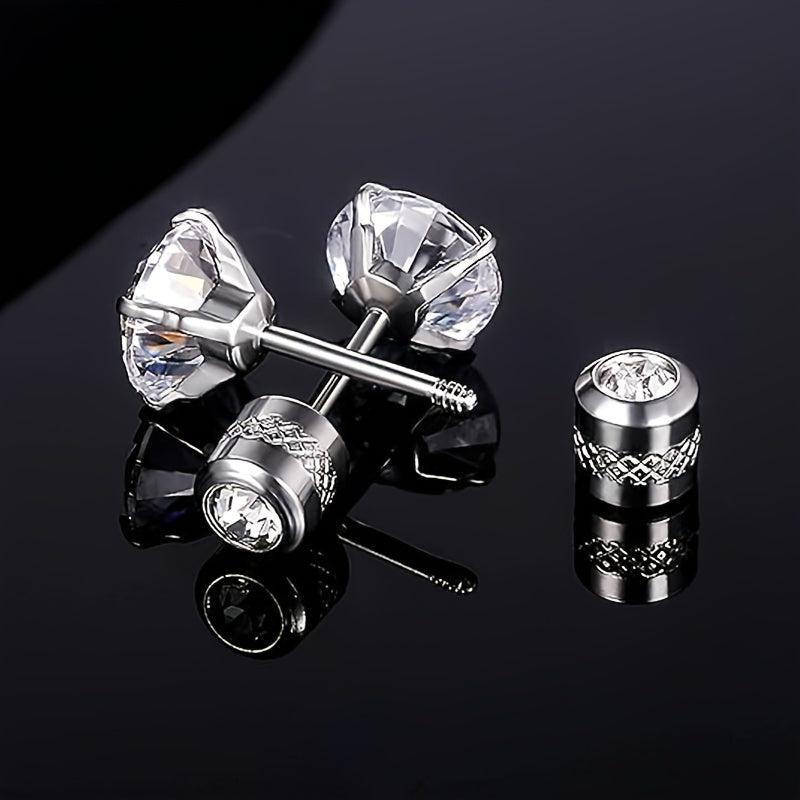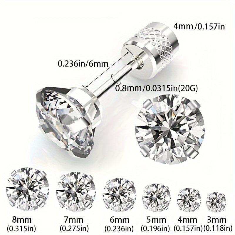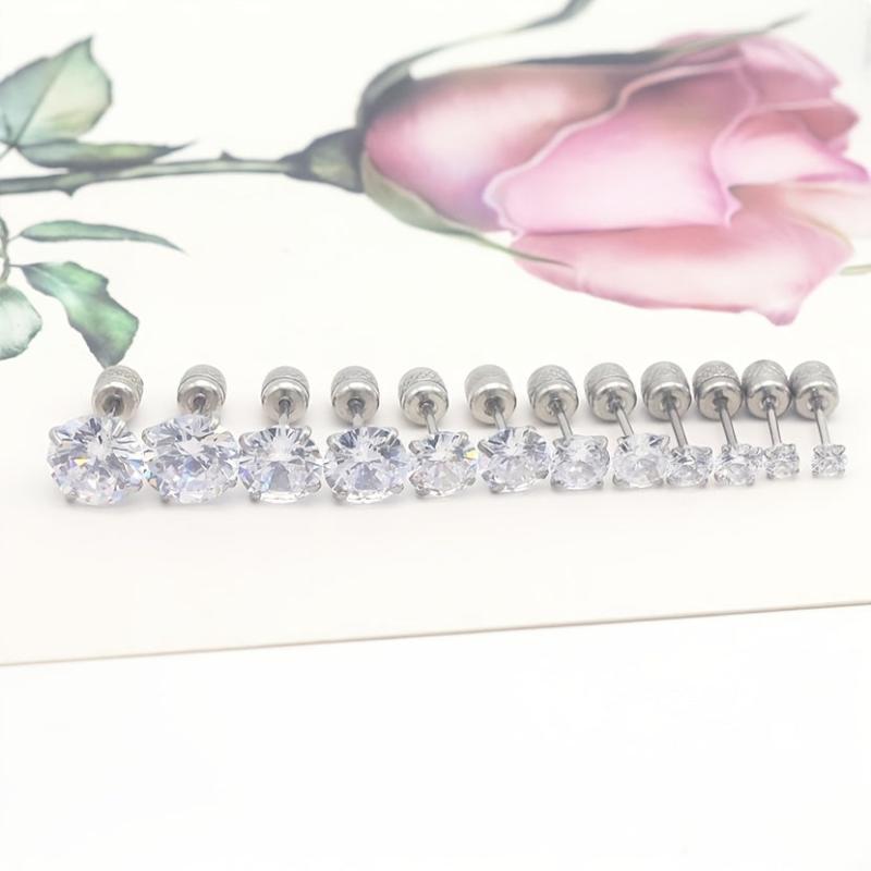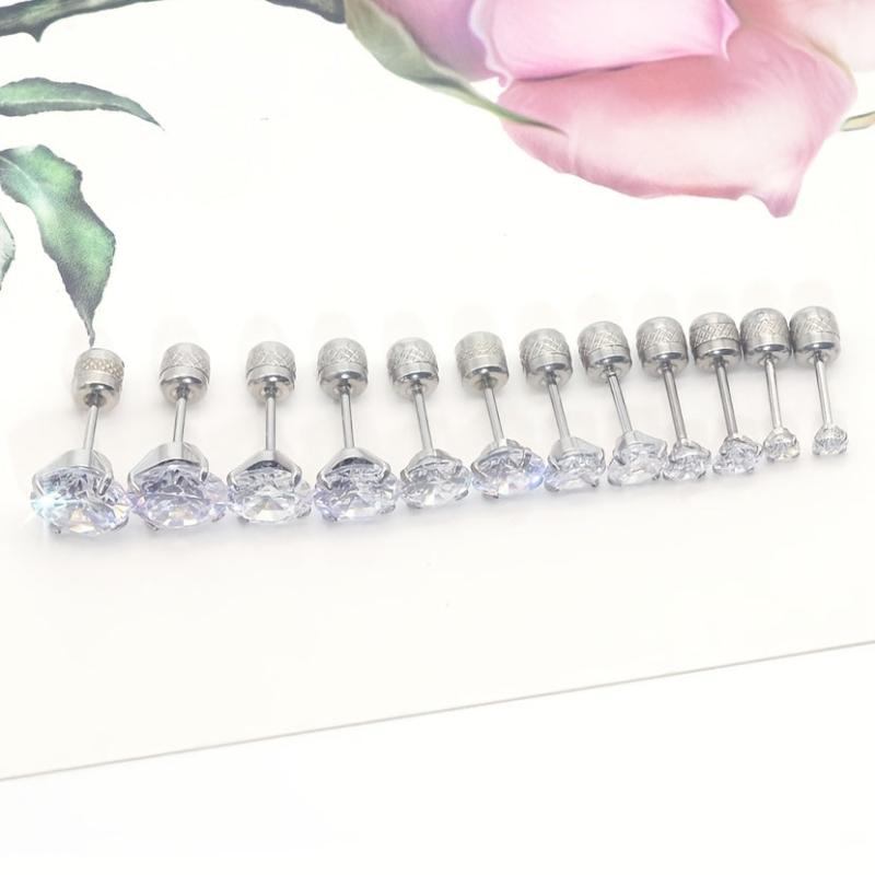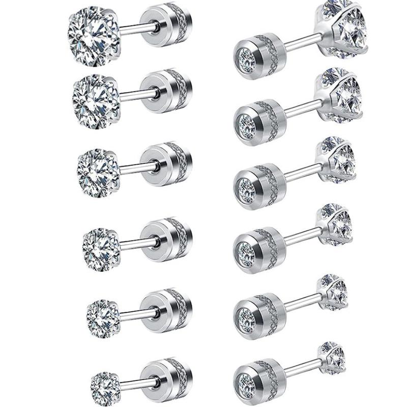 Elevate your style with this set of 6 pairs of stainless steel earrings featuring round synthetic zirconia studs with embossed patterns. Perfect for adding a touch of elegance to any outfit.