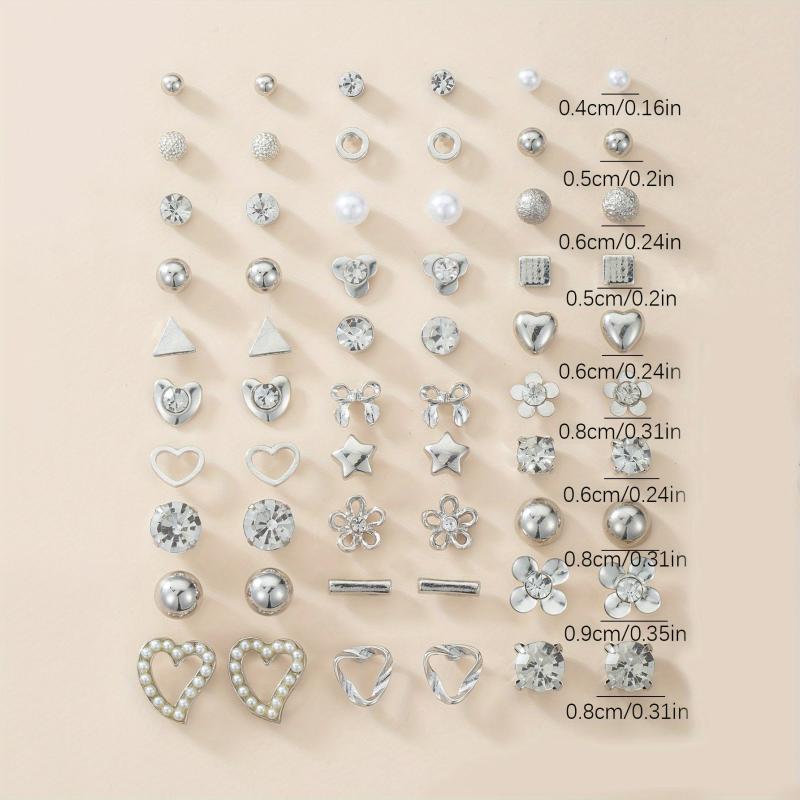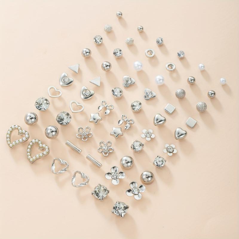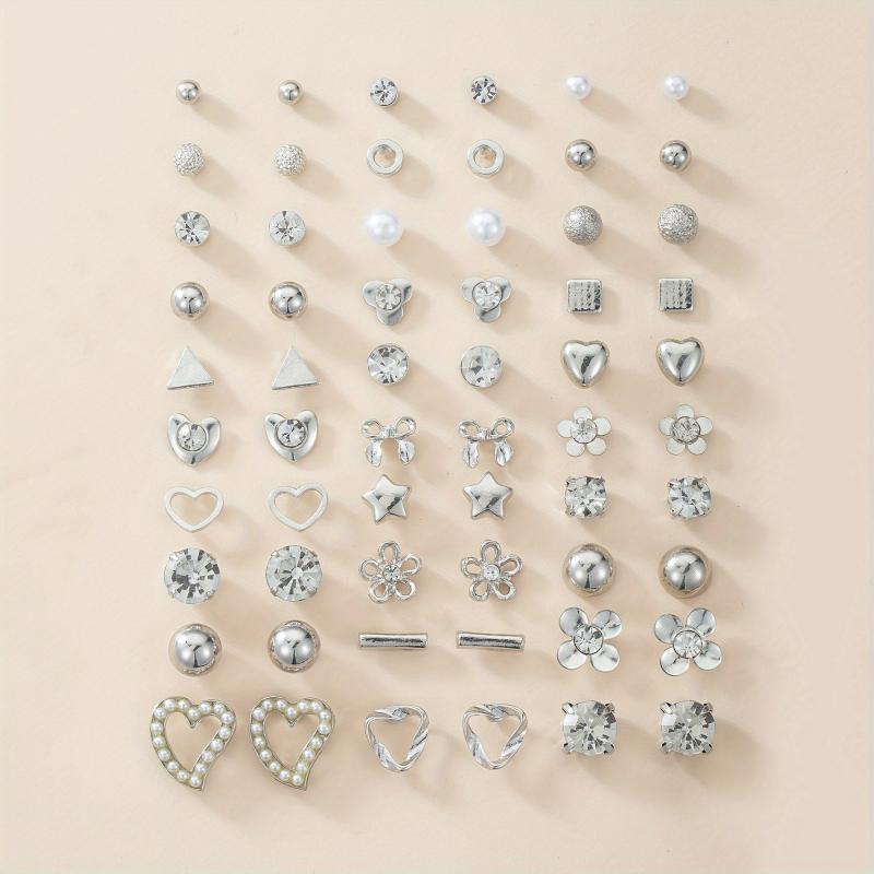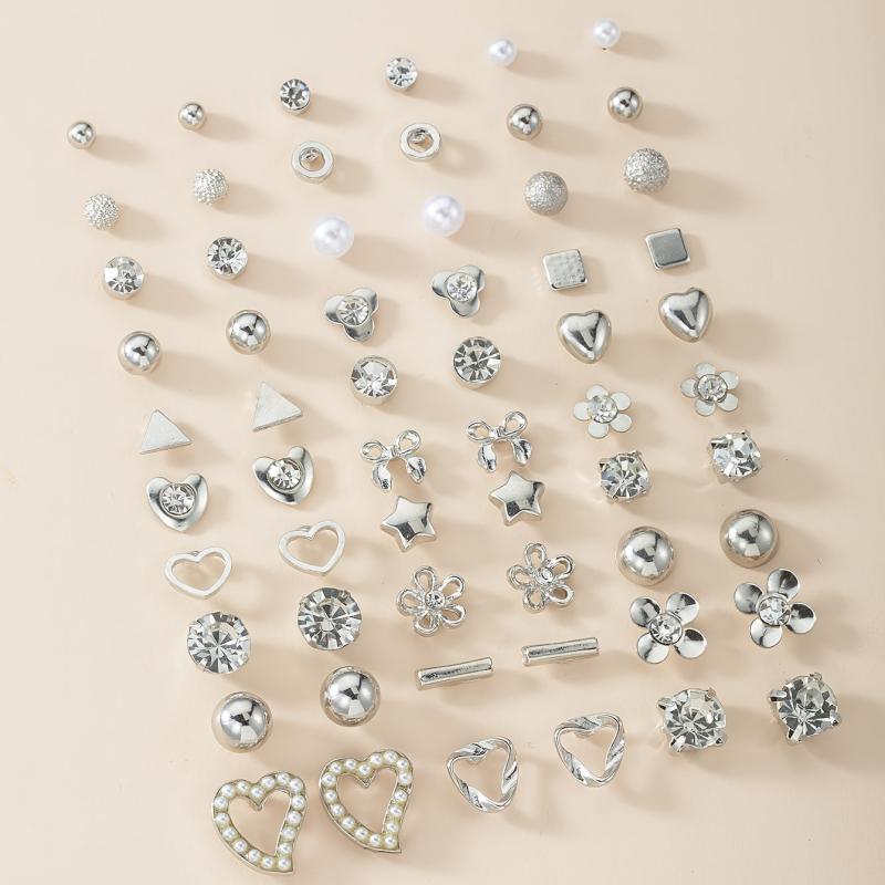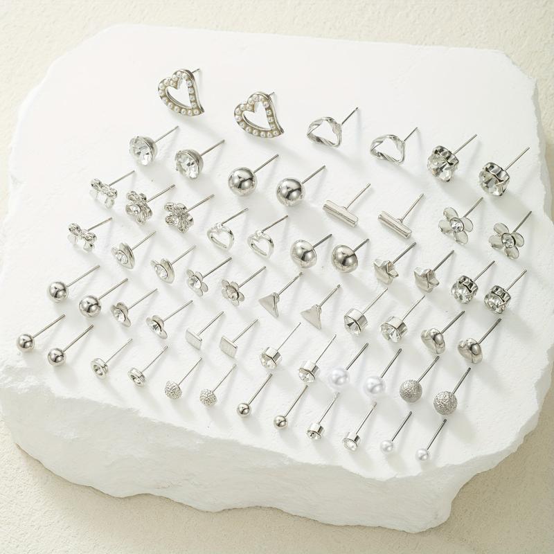 Elevate your style with this 60 pairs set of delicate and silvery stud earrings. Perfect for daily wear or special occasions, these earrings are a great addition to any jewelry collection.