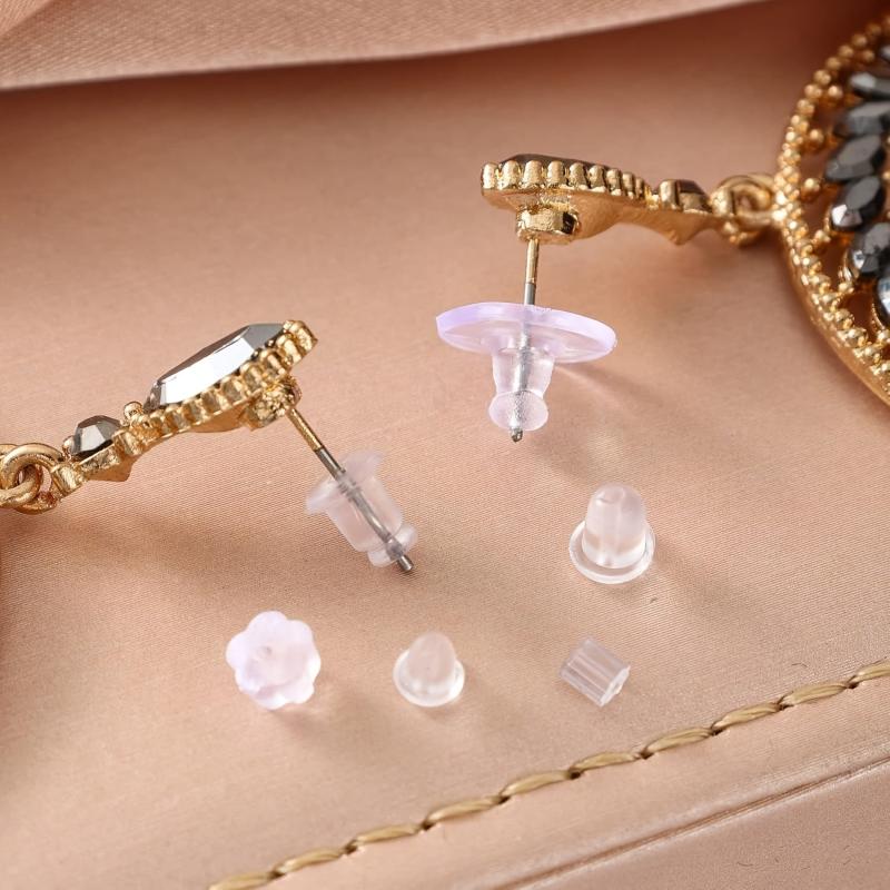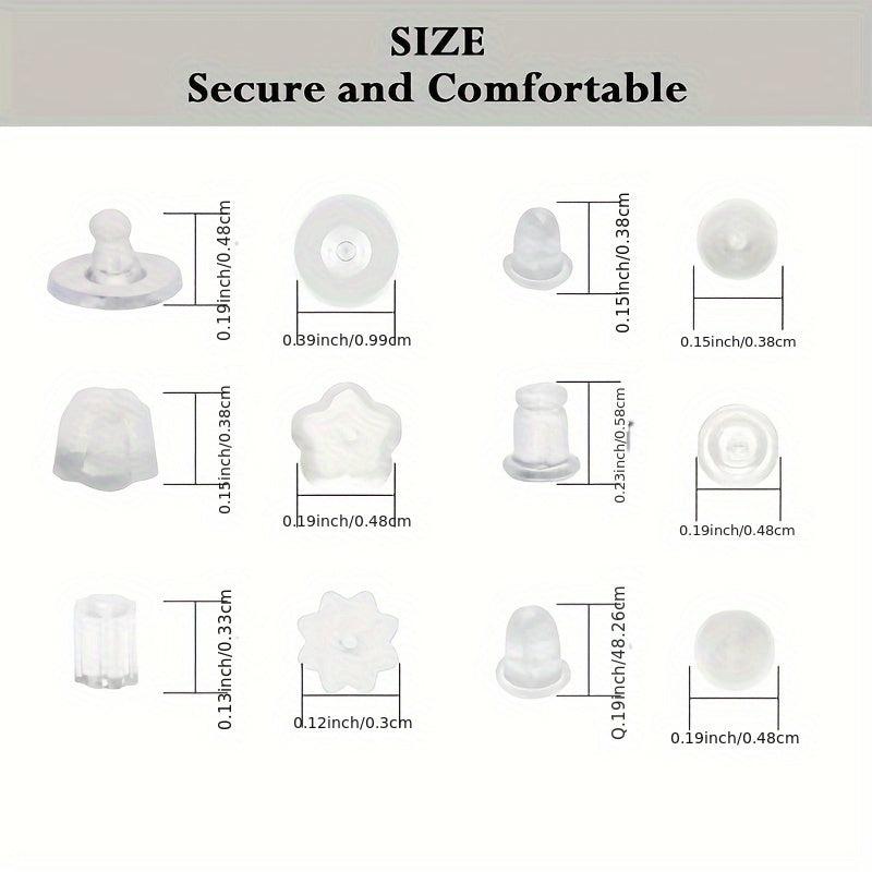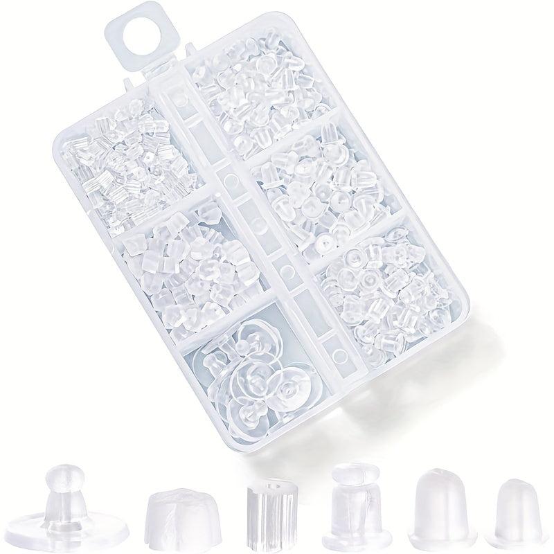 This set includes 600 soft stud earrings with hypoallergenic silicone and plastic fish hook covers. Perfect for sensitive ears.