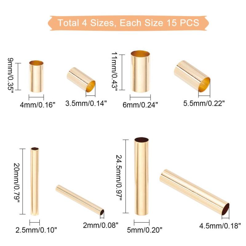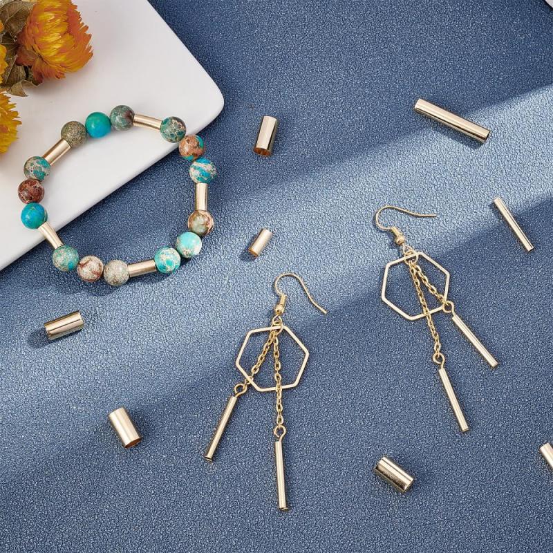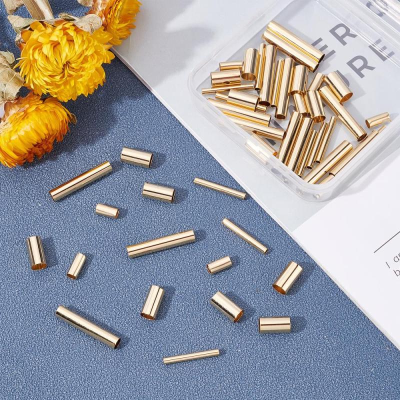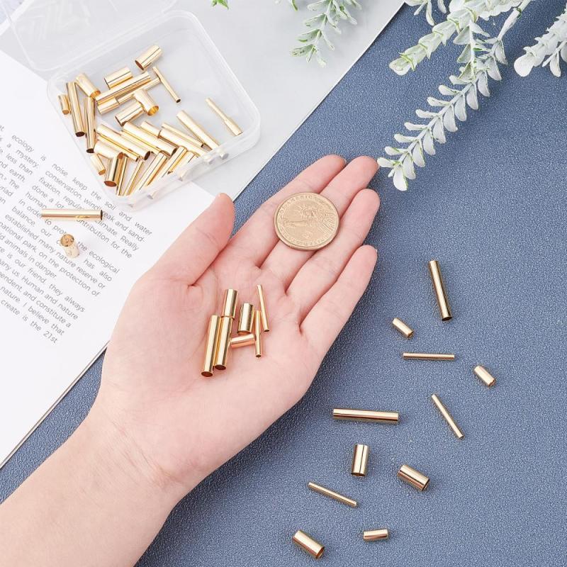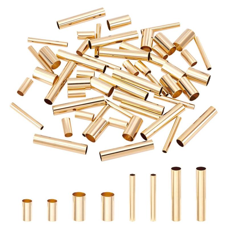 Get a pack of 60 long-lasting plated brass tube beads for jewelry making. These 24K golden plated spacer beads are perfect for DIY projects.