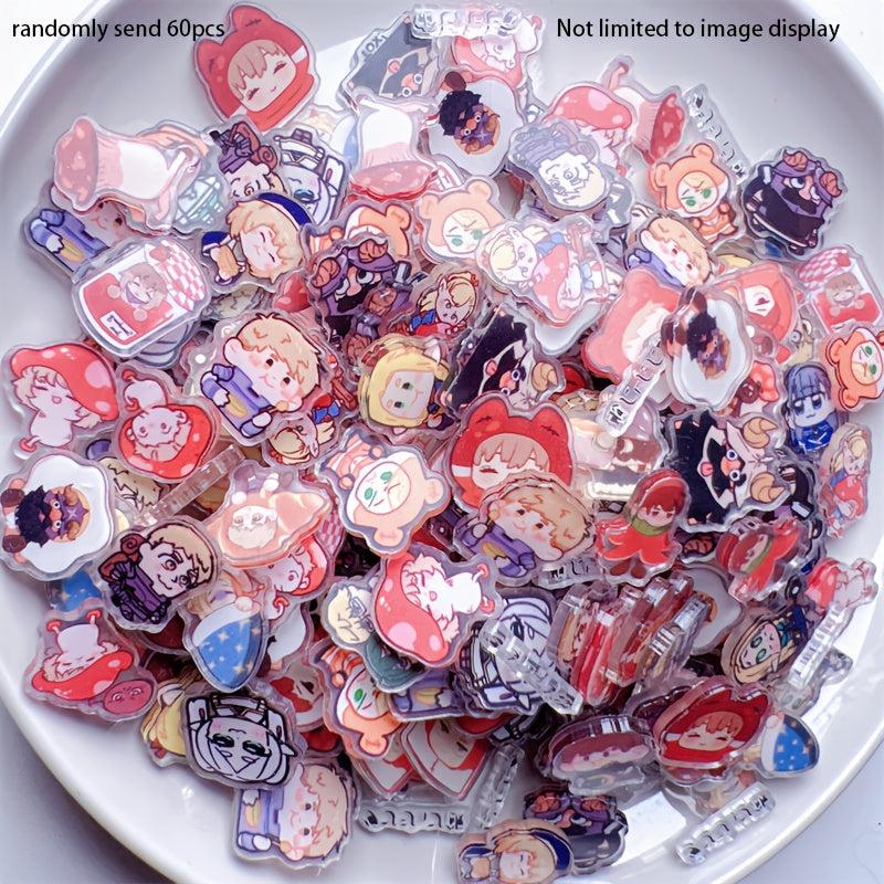 Get 60 vibrant acrylic pieces of delicious food designs for making keychains, necklaces, earrings, and other decorations. Perfect for anime-inspired jewelry projects.