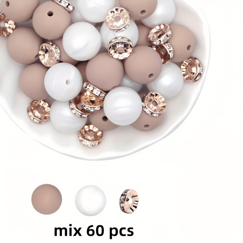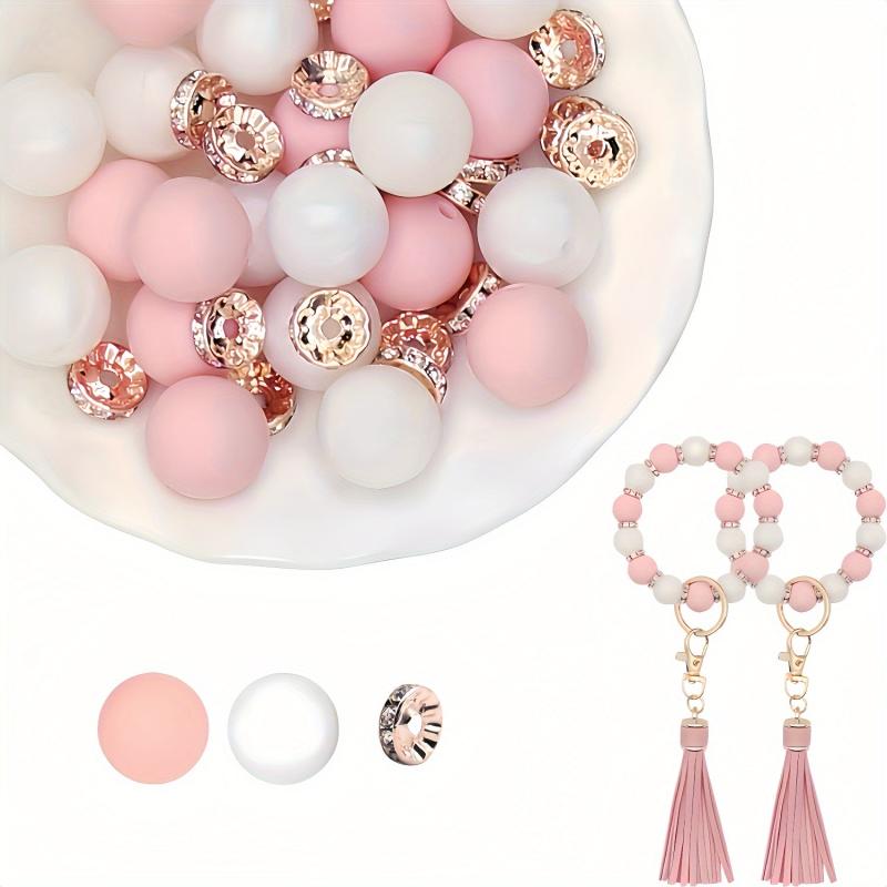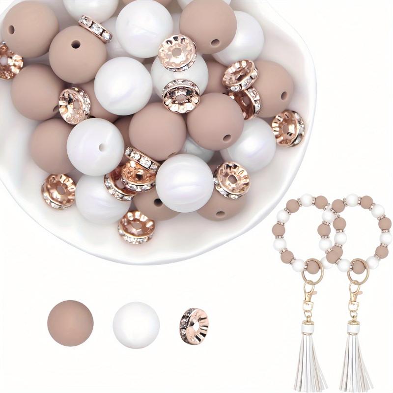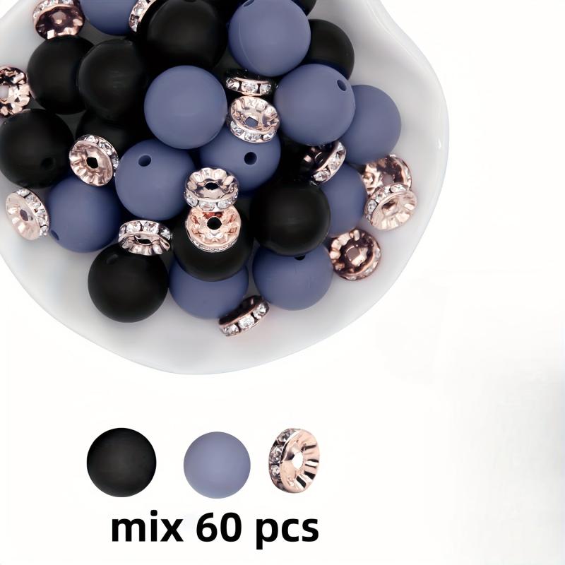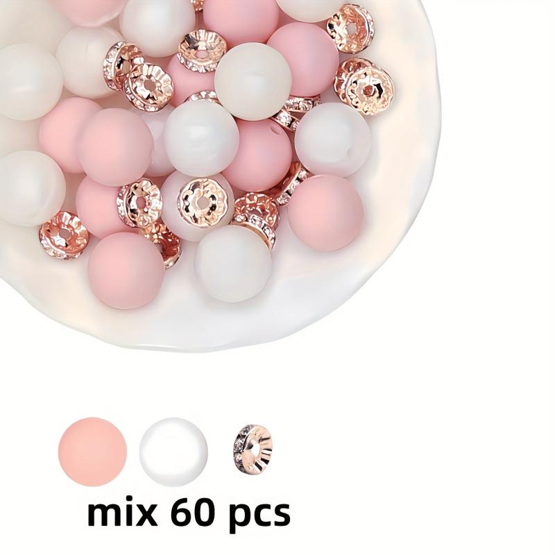 This set includes 60 solid round and flat silicone beads, perfect for creating necklaces, bracelets, keychains, and other jewelry pieces.