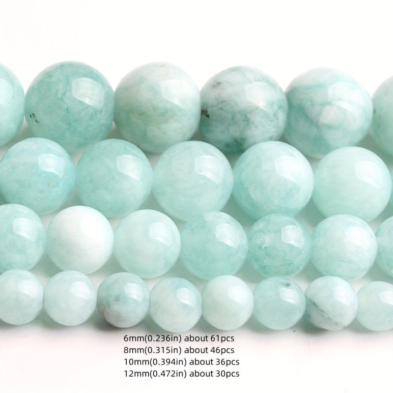 Get 61pcs of high quality loose spaced Angelite beads for creating stunning bracelets, necklaces, and accessories. These beads are perfect for DIY projects and jewelry making.