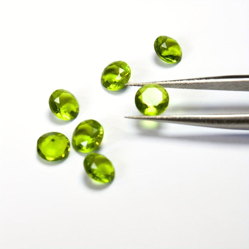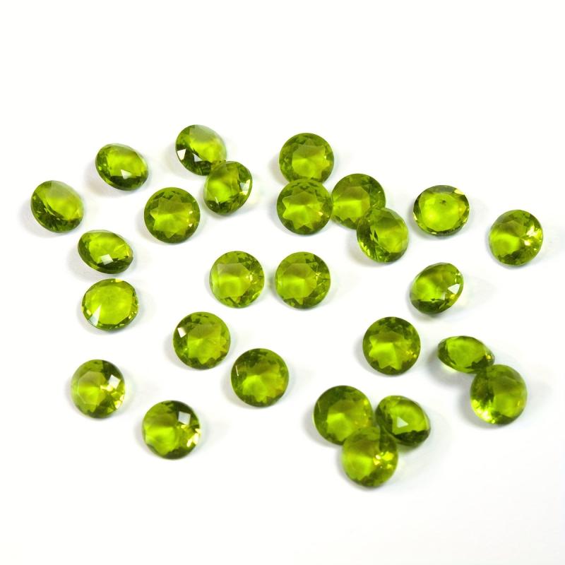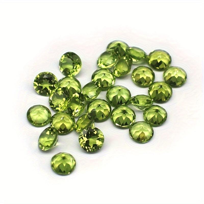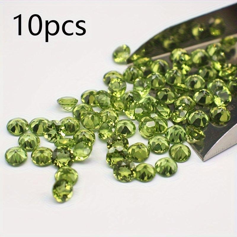 Enhance your jewelry making with this set of 10 natural peridot round ring faced loose stones. Ideal for creating rings, pendants, necklaces, and more.