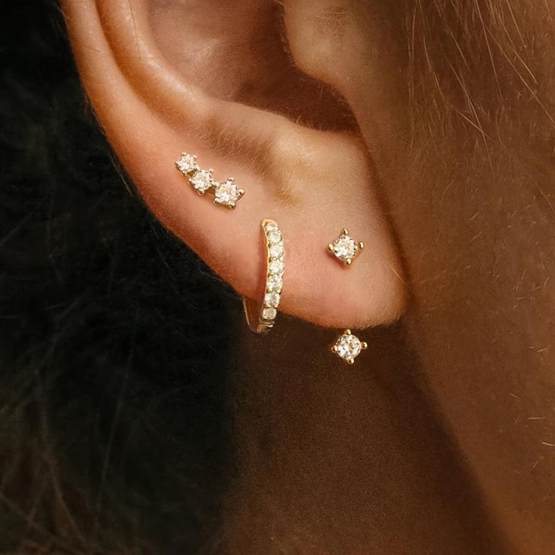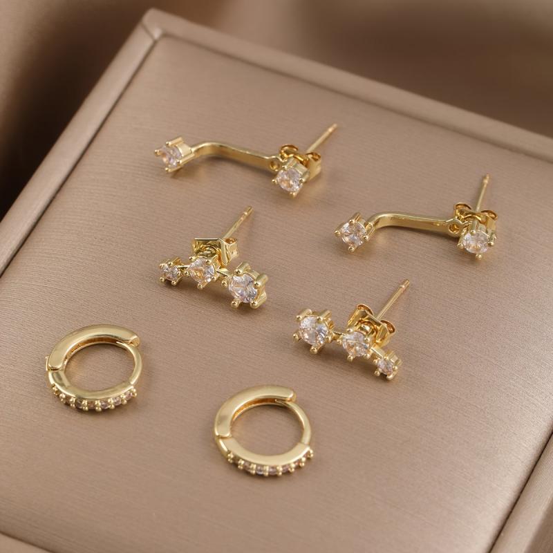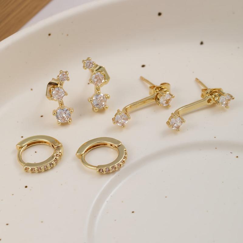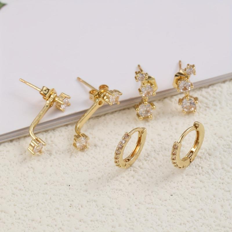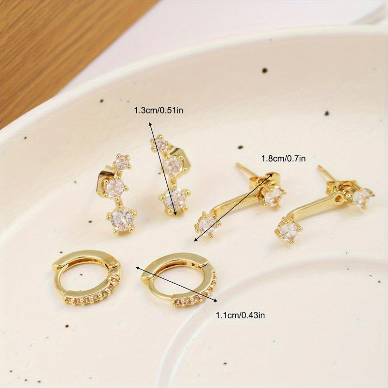 This earring set includes 6 pieces of synthetic zirconia copper earrings with stainless steel ear needles. Suitable for daily and vacation wear, all seasons.