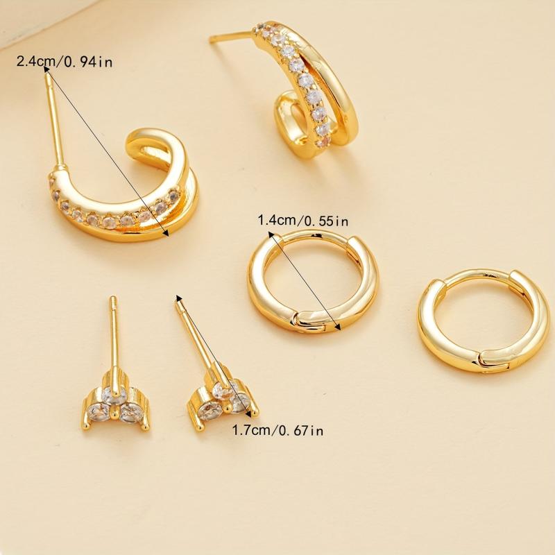 Enhance your style with this 6-piece earring set featuring a mix of copper and rhinestone designs. Perfect for vacations, romantic dates, and everyday casual outfits.