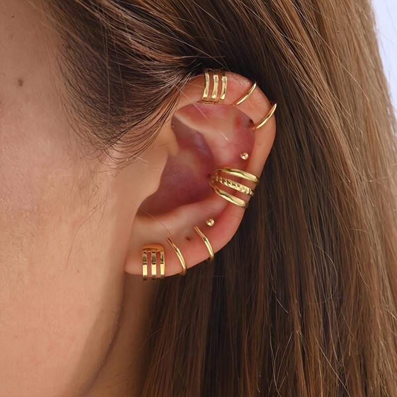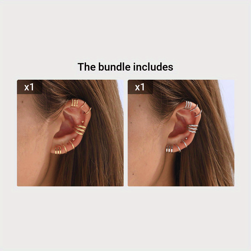 This set includes 7 stylish geometric ear clips suitable for various occasions like dating, vacation, and daily wear. It makes a perfect gift for women.