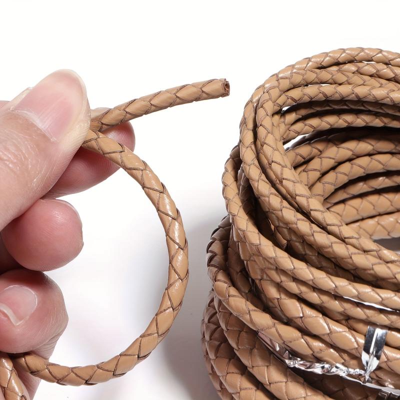 Braided faux leather cord with textured surface, perfect for DIY bracelet and necklace making projects.