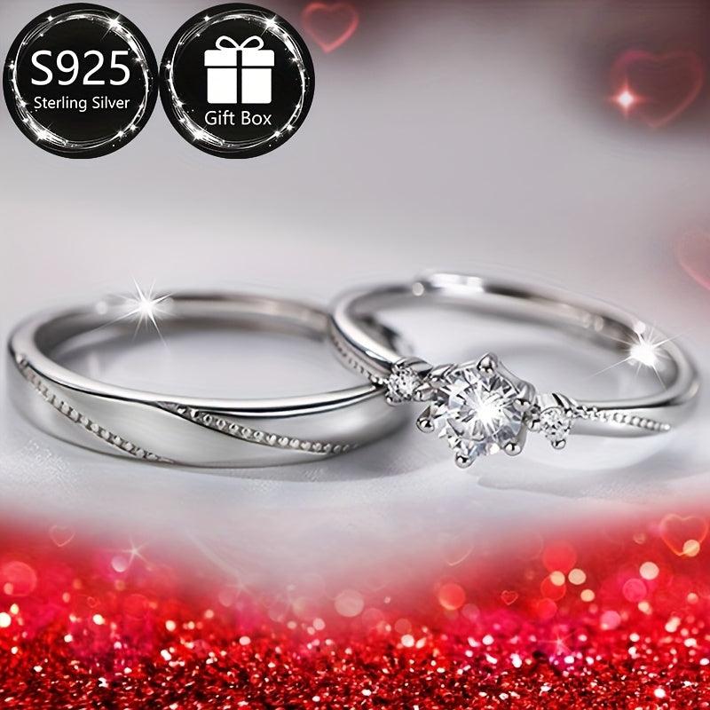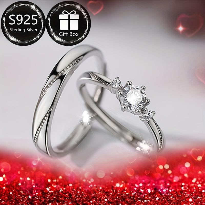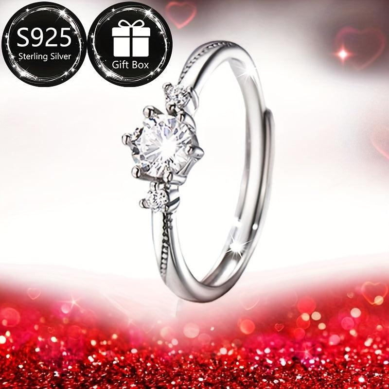 Delight your loved one with this classic romantic engagement ring featuring an adjustable open design crafted from 925 silver. Perfect for expressing your love on Valentine's Day.