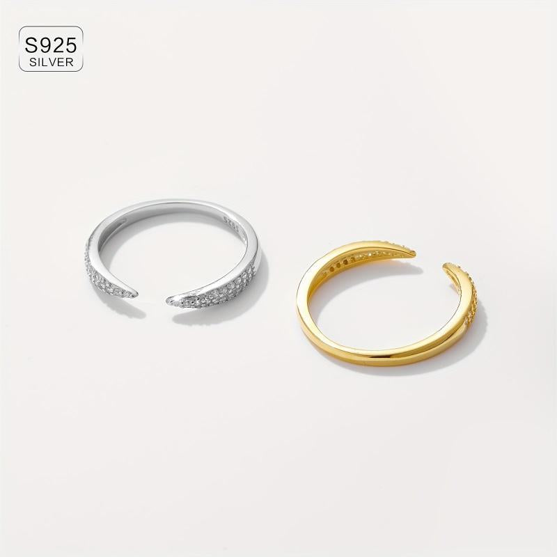 Add a touch of elegance to your daily look with this adjustable open ring. Made of 925 silver and 18K gold plated, featuring sparkling zirconia. Perfect for everyday wear.