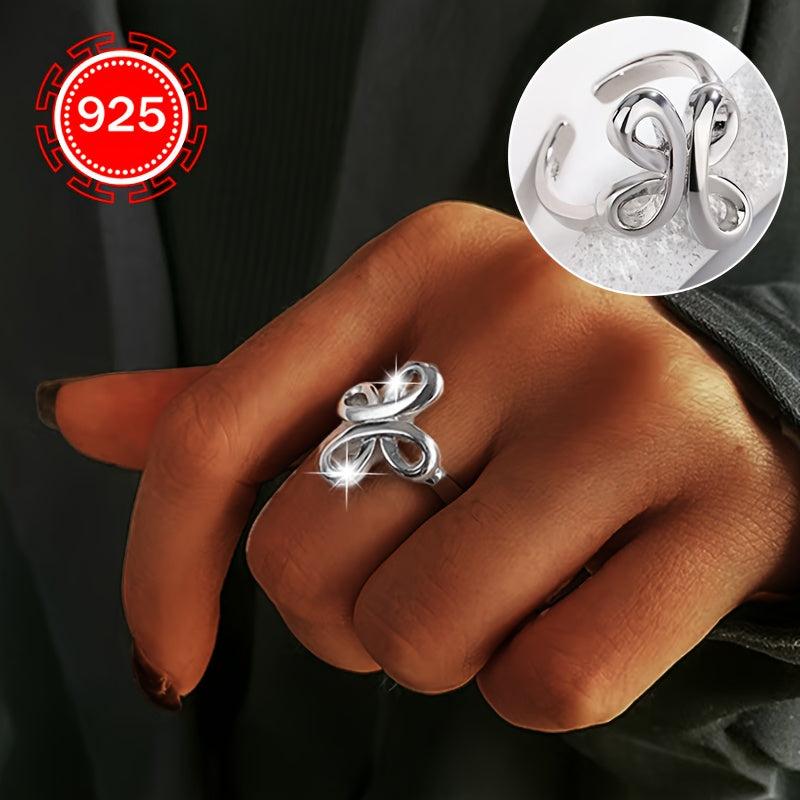 Elegant 925 silver ring featuring Chinese knot design, ideal for couples, friends. Suitable for daily wear, wedding, banquet, beach vacation.