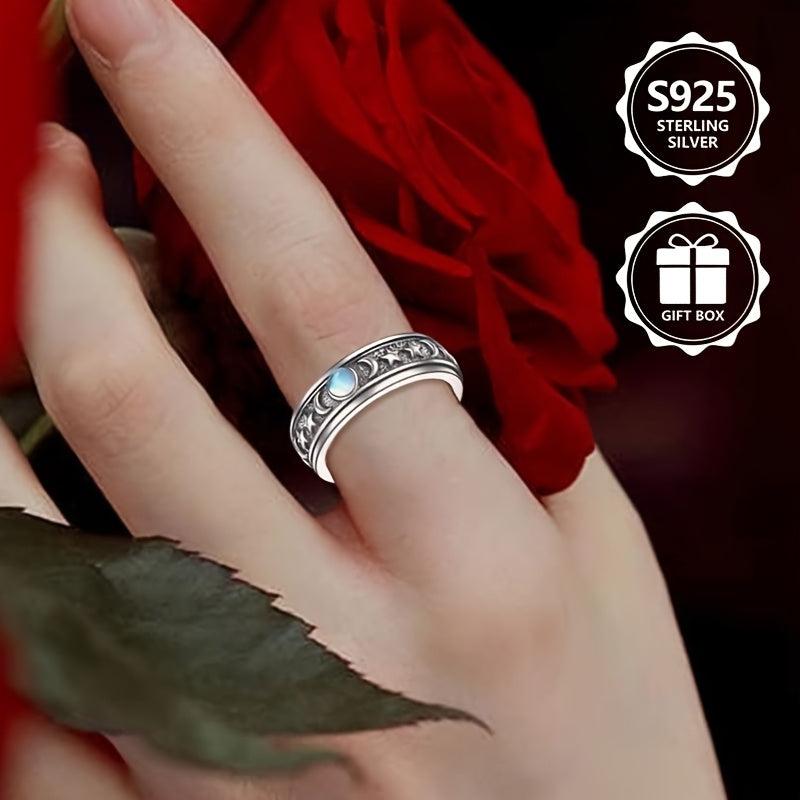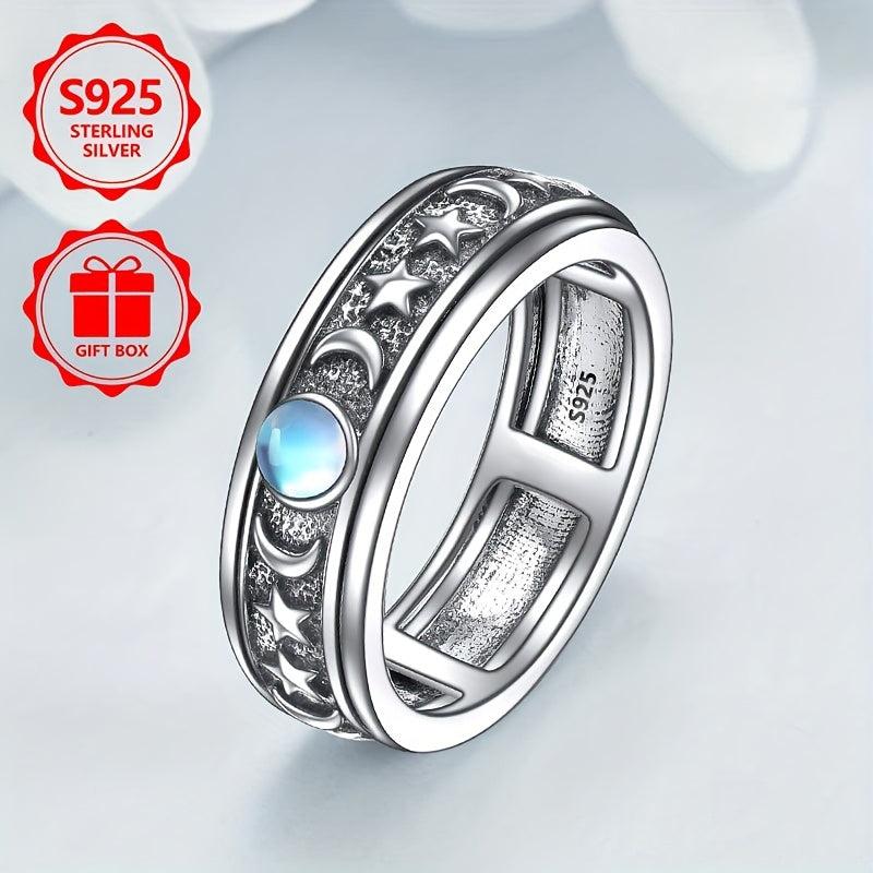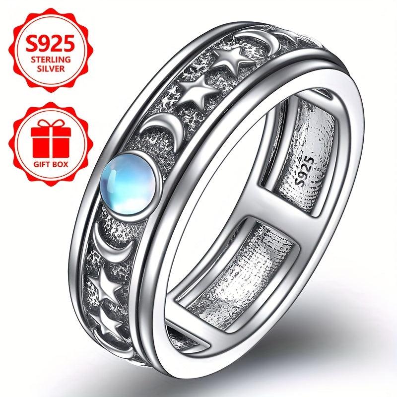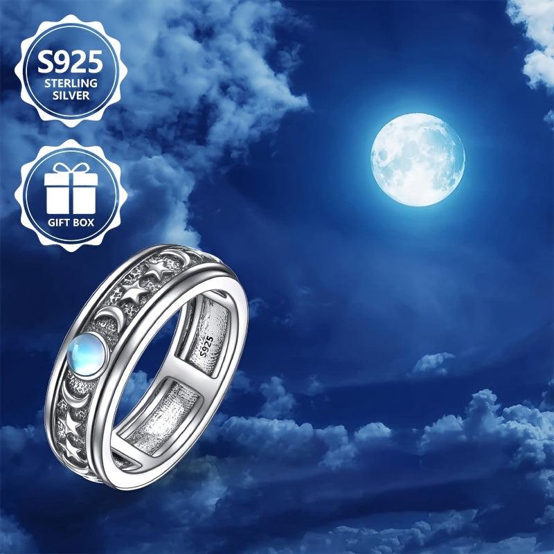 This vintage couple ring features a star and moon pattern with a round moonstone inlay. Perfect for weddings, engagements, or as a gift for a friend.