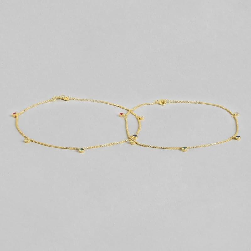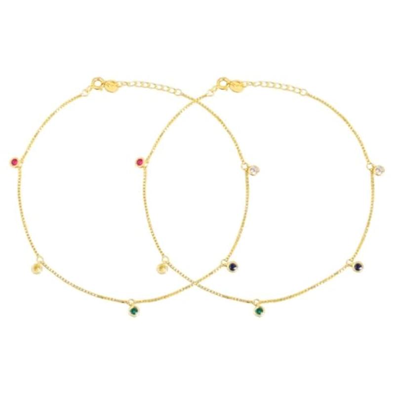Hypoallergenic pair of anklets with 925 sterling silver stamp and cubic zirconia plating.