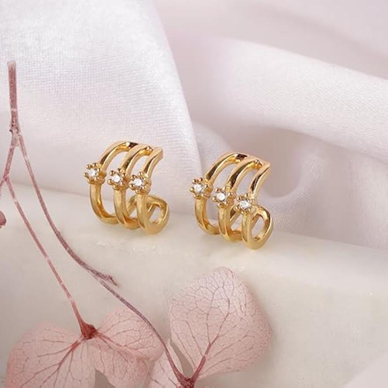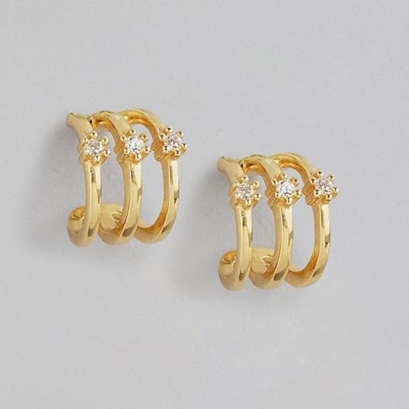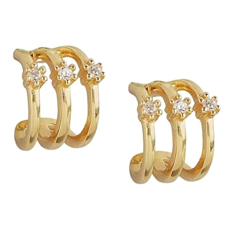Elegant and eye-catching earcuffs made of 925 sterling silver with triple layered design and cubic zirconia stones. Features hallmark for authenticity.