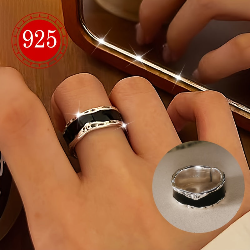 This unique 925 silver ring is hypoallergenic and perfect for gifting to couples or friends. The drip glaze design gives it a special feel.