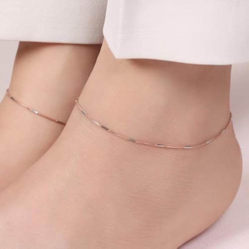 These anklets are made of 925 sterling silver with dual-colour plating, ideal for those with sensitive skin. Each anklet features a traditional design and comes in a pair.