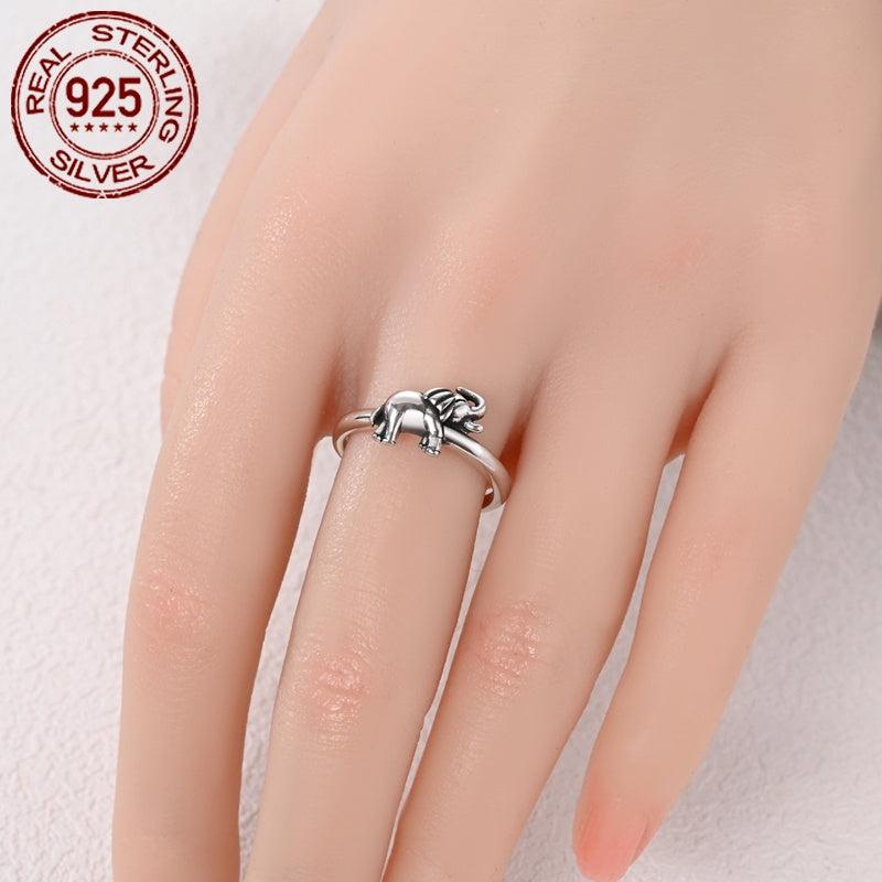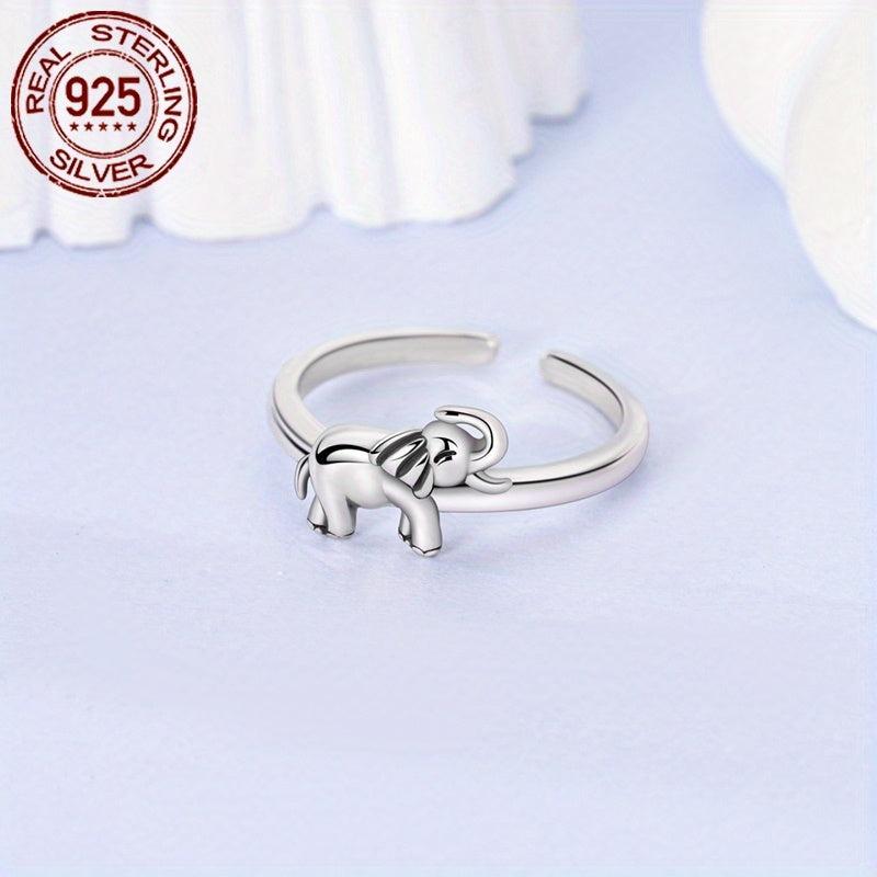 This stunning 925 sterling silver ring features an elephant design with sparkling stones, perfect for weddings, birthdays, Christmas, and Valentine's Day. It's a low allergenic option for women.