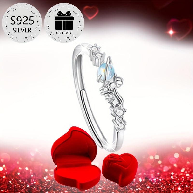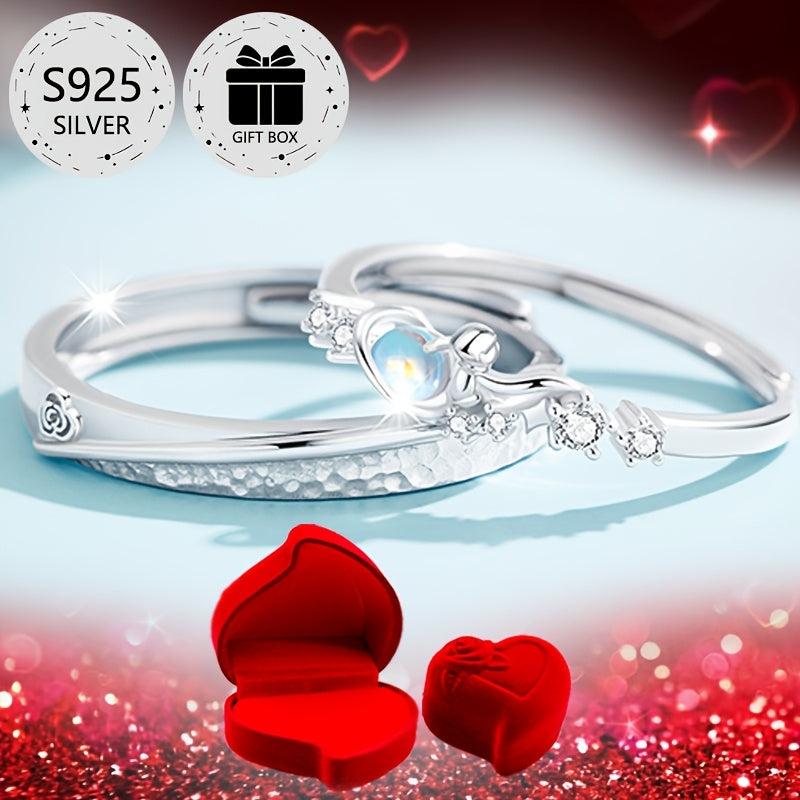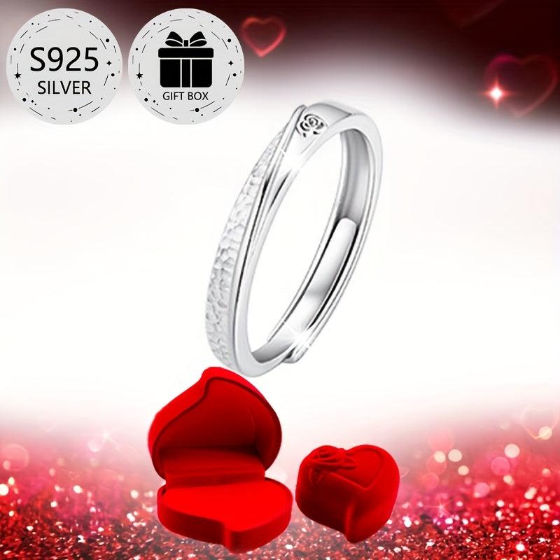 This adjustable 925 sterling silver ring is perfect for proposals, weddings, parties, and daily wear. Featuring a romantic rose design with a heart accent, this ring is a beautiful symbol of love.