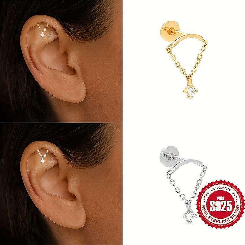 This flat head thread ear bone stud is made of 925 silver, offering a low allergy option with a sense of style. Perfect for everyday wear.