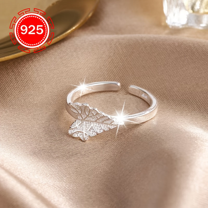 This delicate ring is made of 925 silver and features a forest pattern with flowers and leaves. It is perfect for everyday wear and is hypoallergenic.