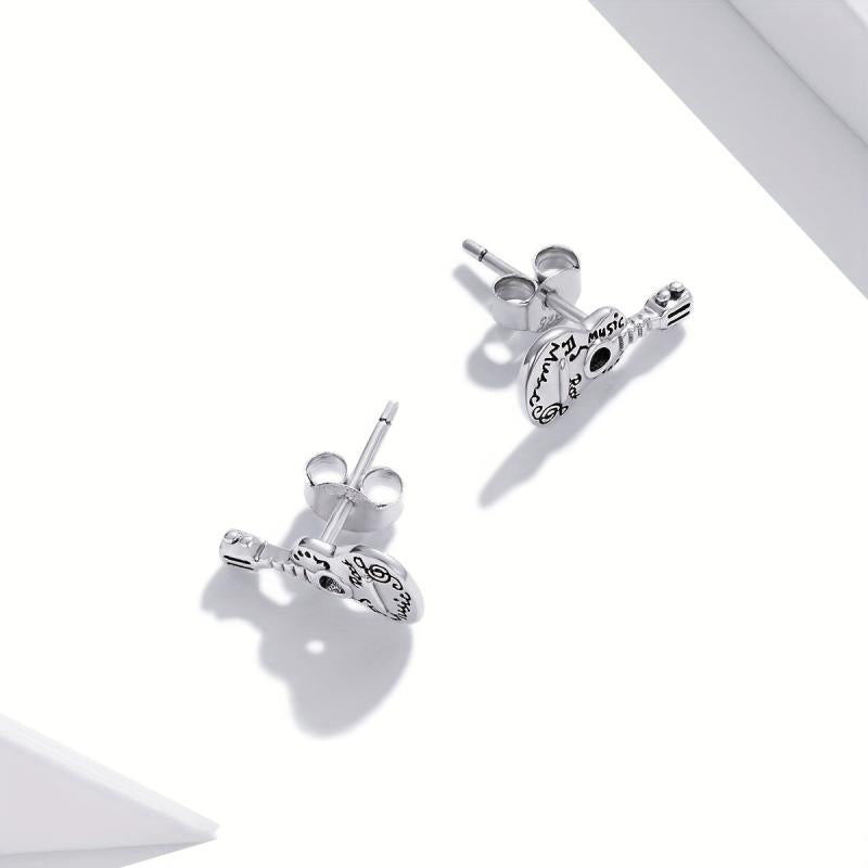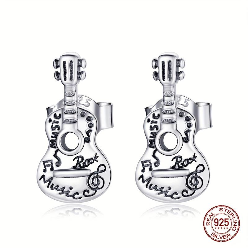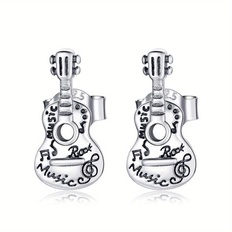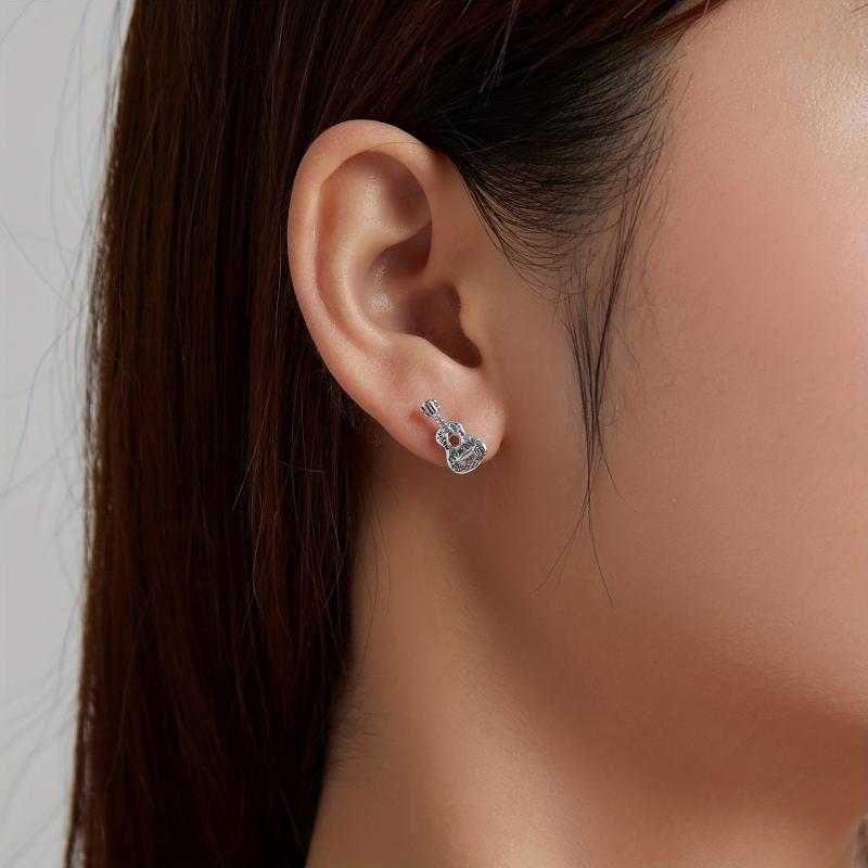 Add a touch of music-inspired charm to your look with these stunning guitar stud earrings. Made from 925 sterling silver and adorned with zircon, these earrings are perfect for a bohemian party style.